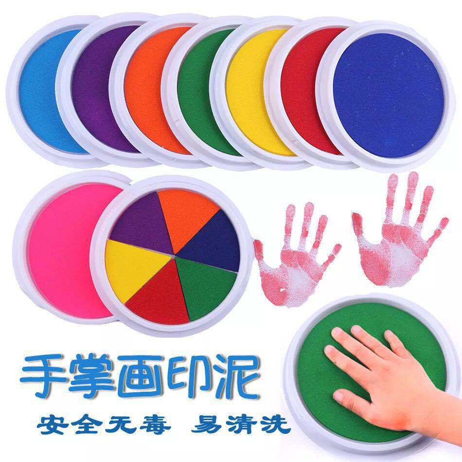 跨境幼儿园手指手掌画颜料彩色印泥印台大号手掌印泥无毒可水洗