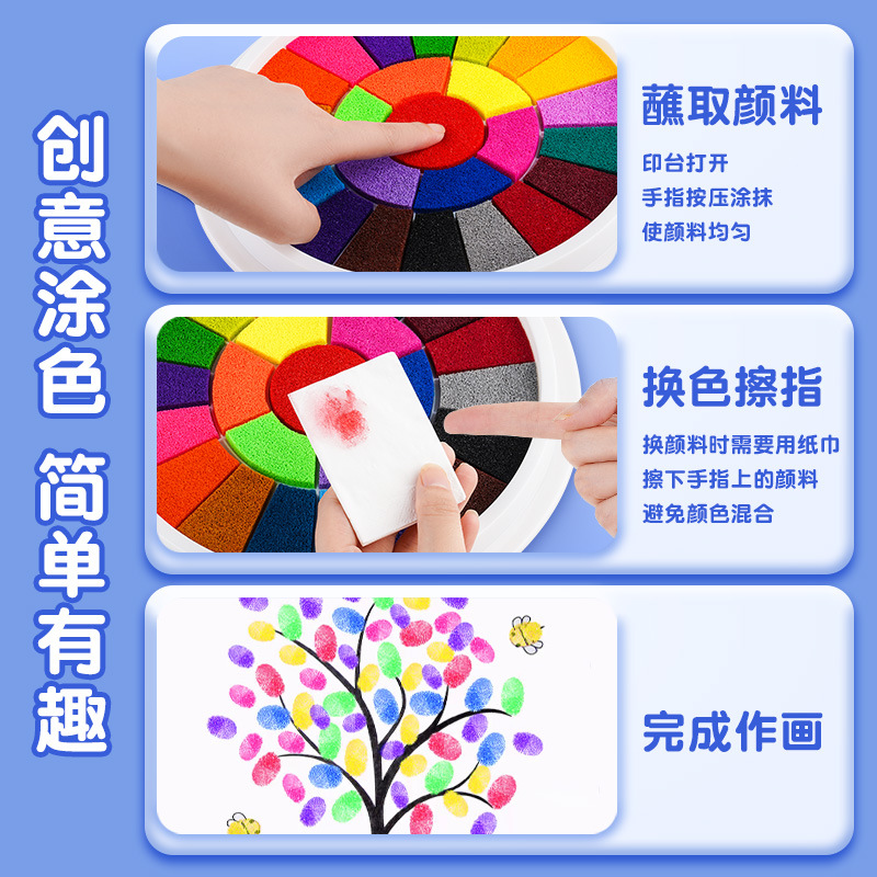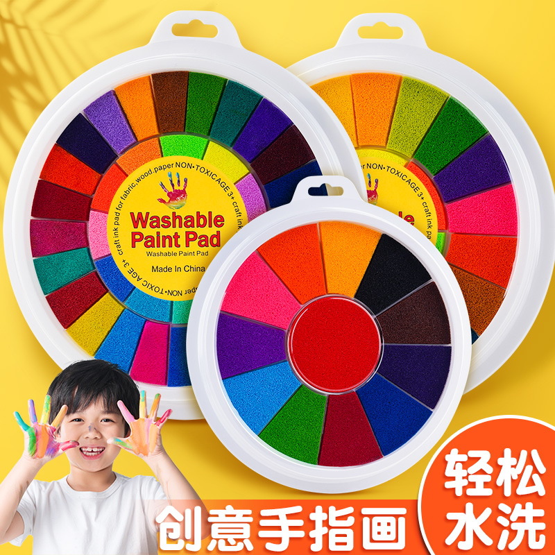 手指画颜料印泥多色手印印盘大号彩色工具宝宝指印画36色可水洗
