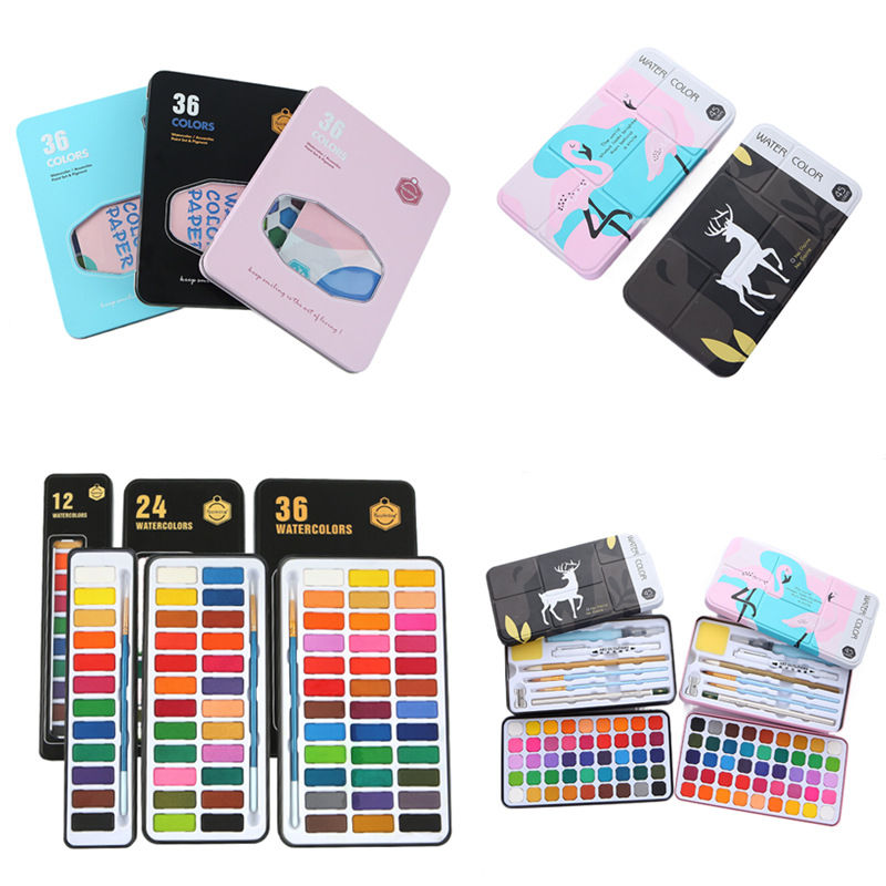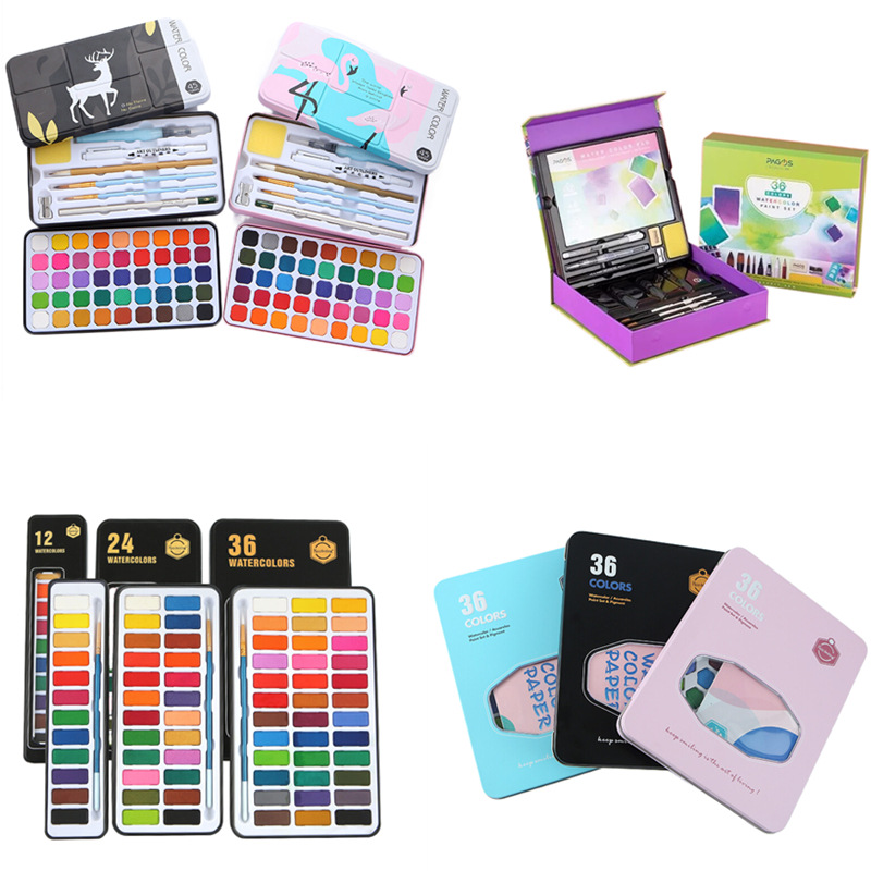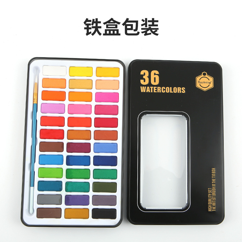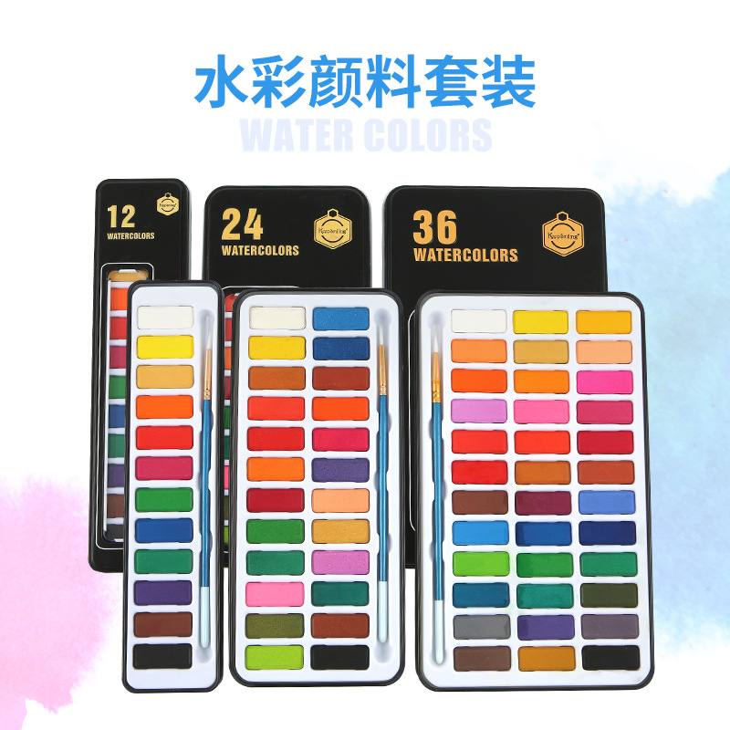 皇仕固体水彩套装12/24/36色固体水彩水粉颜料初学者粉饼固体水彩
