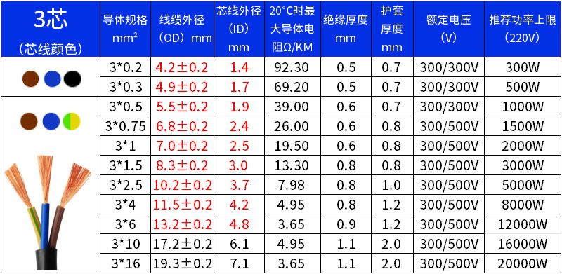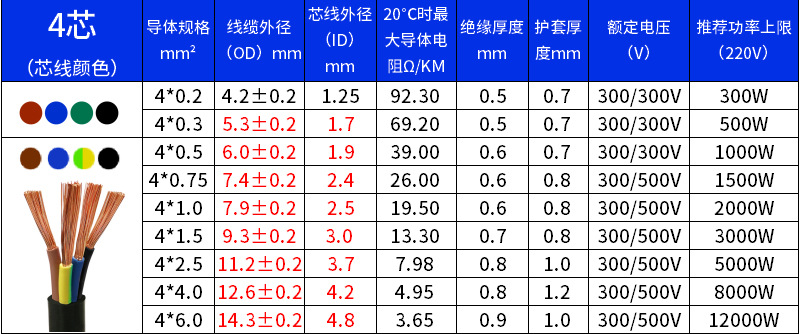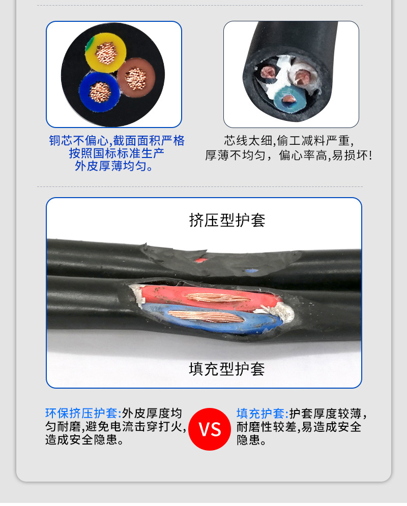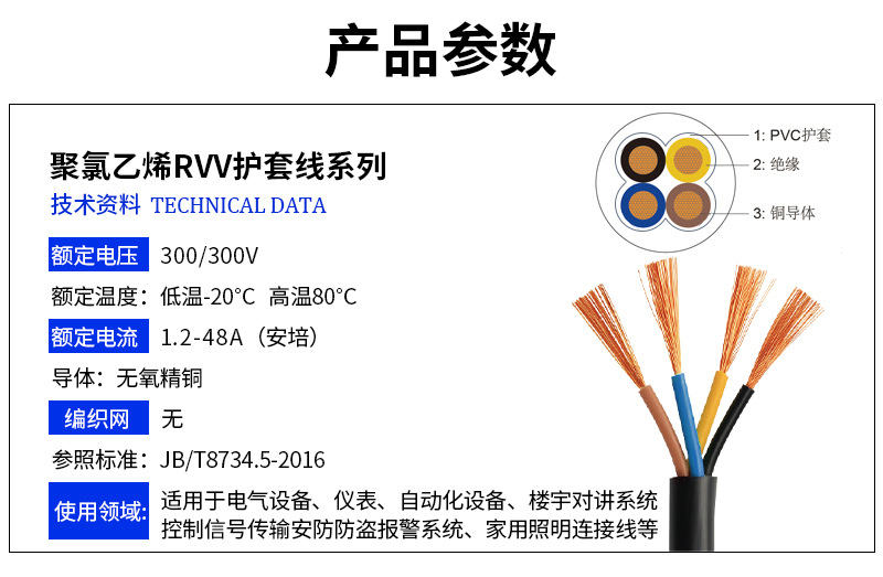 国标铜芯电源线2 3 4芯电缆RVV0.75 1.0 1.5 2.5 4 6平方软护套线