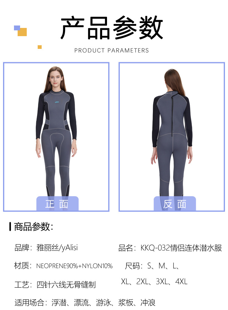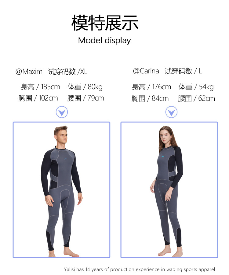 yAlisi定制3mm潜水服男连体保暖冲浪湿式长袖浮潜潜水衣女冬泳衣