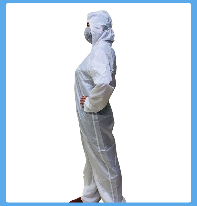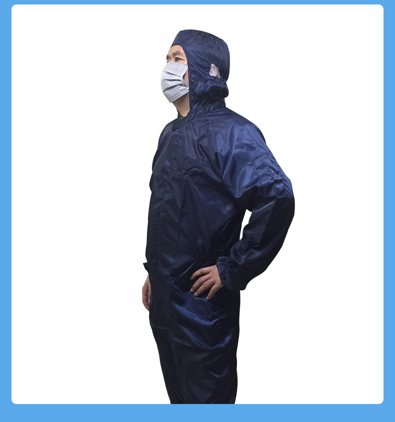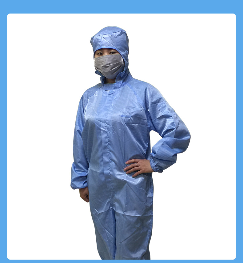 防静电连帽连体防护衣 静电无尘衣工作服全身连体套装蓝色防护服