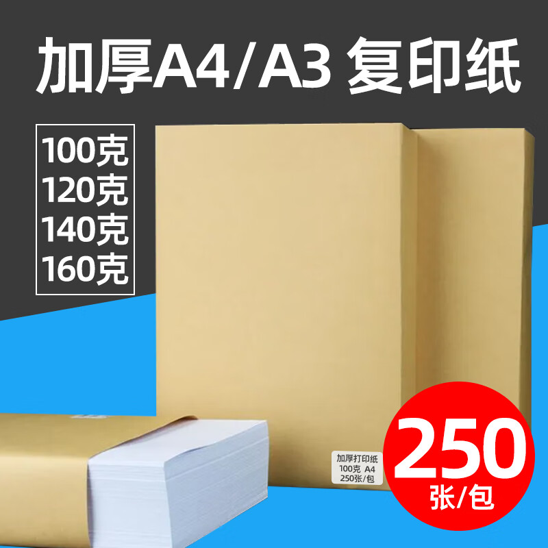 (特)中絮 高白 a4打印纸100g/120g/140g/160g加厚复印纸打印纸 加厚A4纸【250张/包】