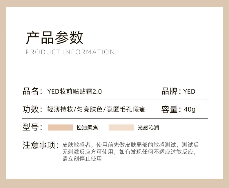 (特)YED妆前乳隔离霜光感沁润妆前贴贴霜40g升级版干皮混干皮教师节礼物
