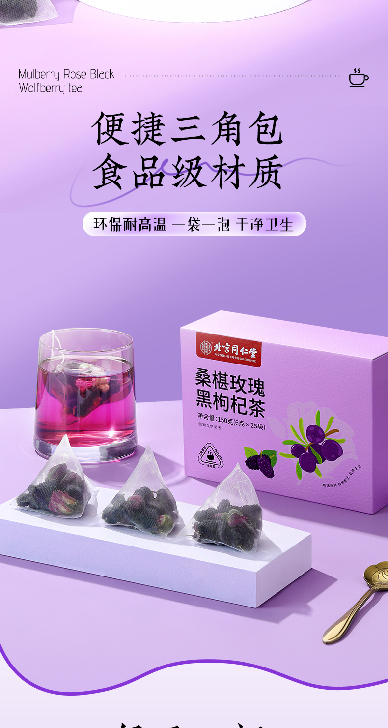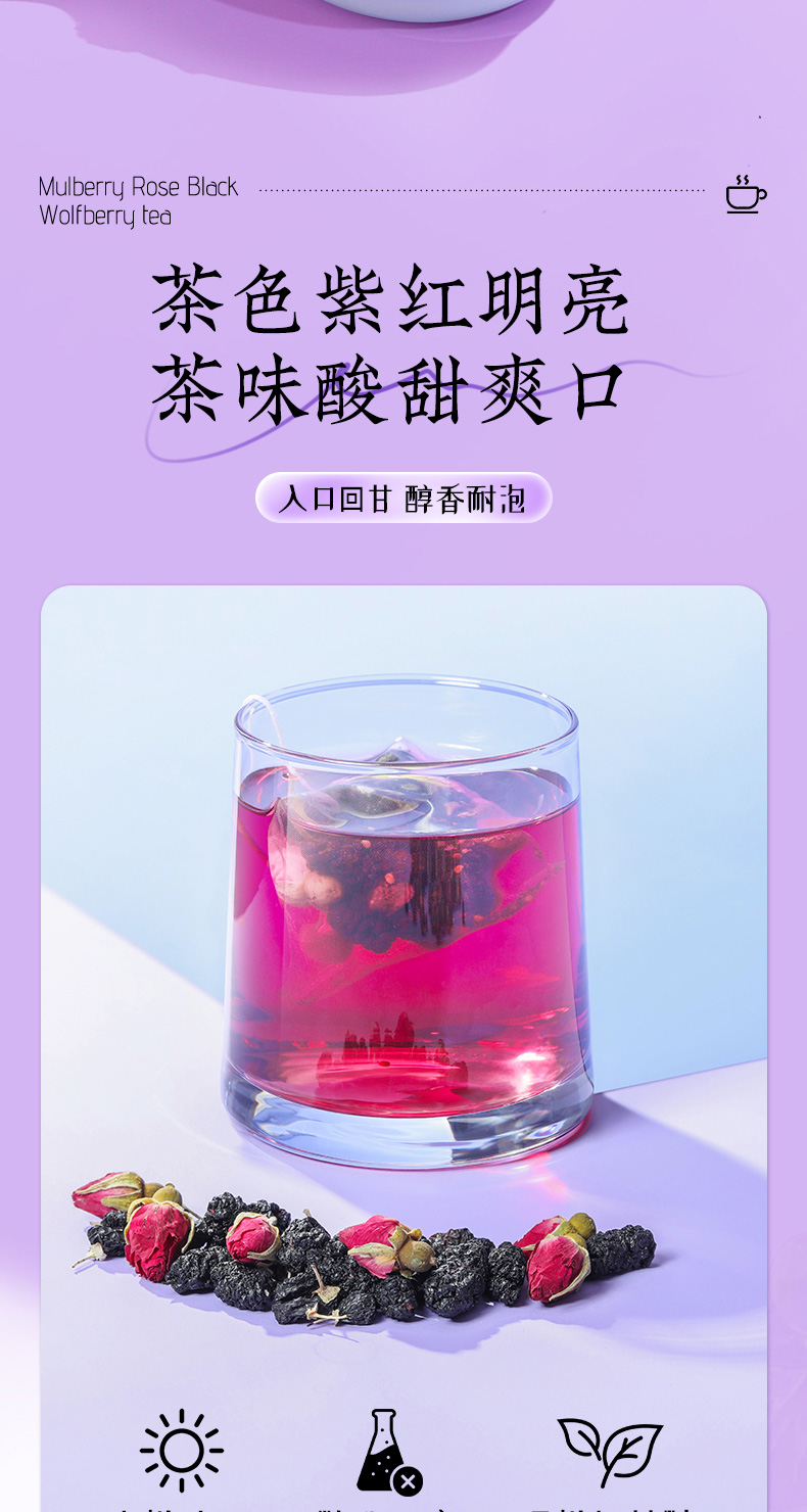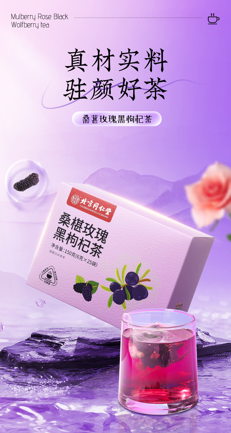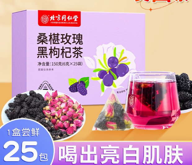 (特)北京同仁堂桑葚干黑枸杞玫瑰花茶组合女性非美白养颜养生茶