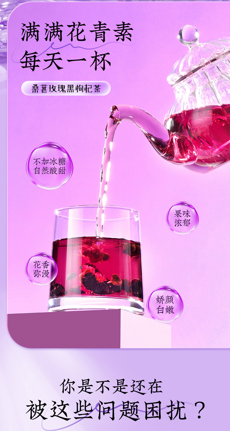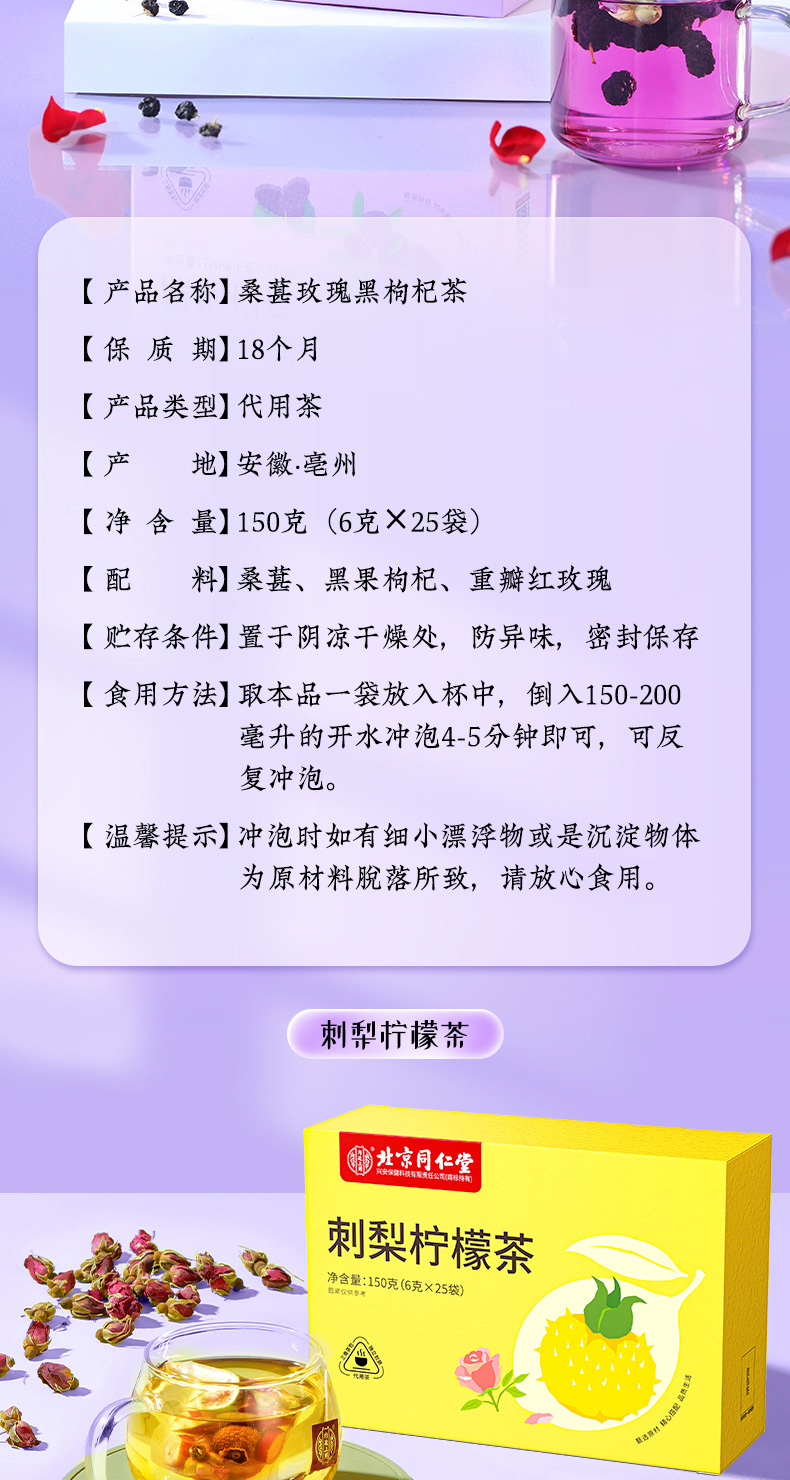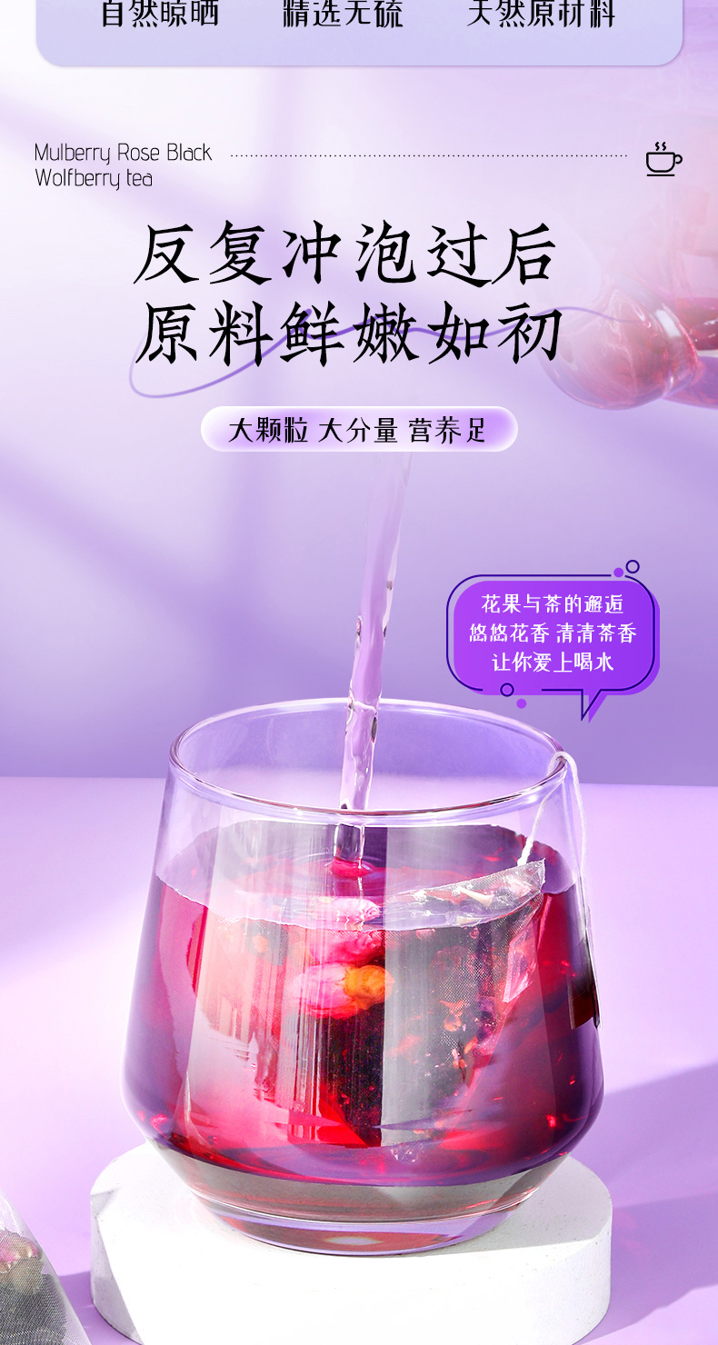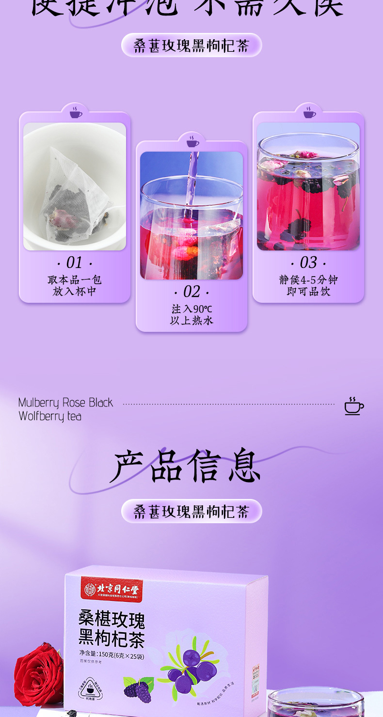 (特)北京同仁堂桑葚干黑枸杞玫瑰花茶组合女性非美白养颜养生茶