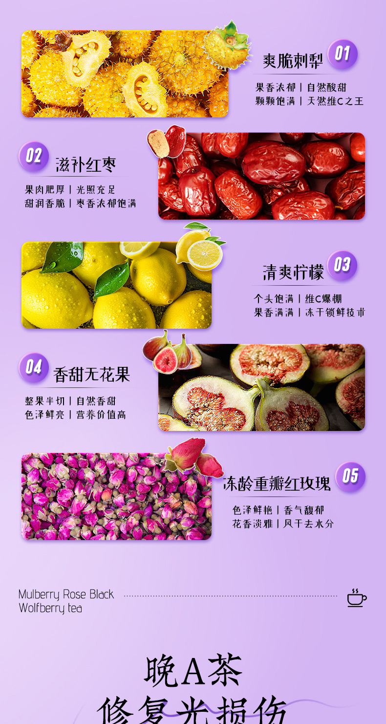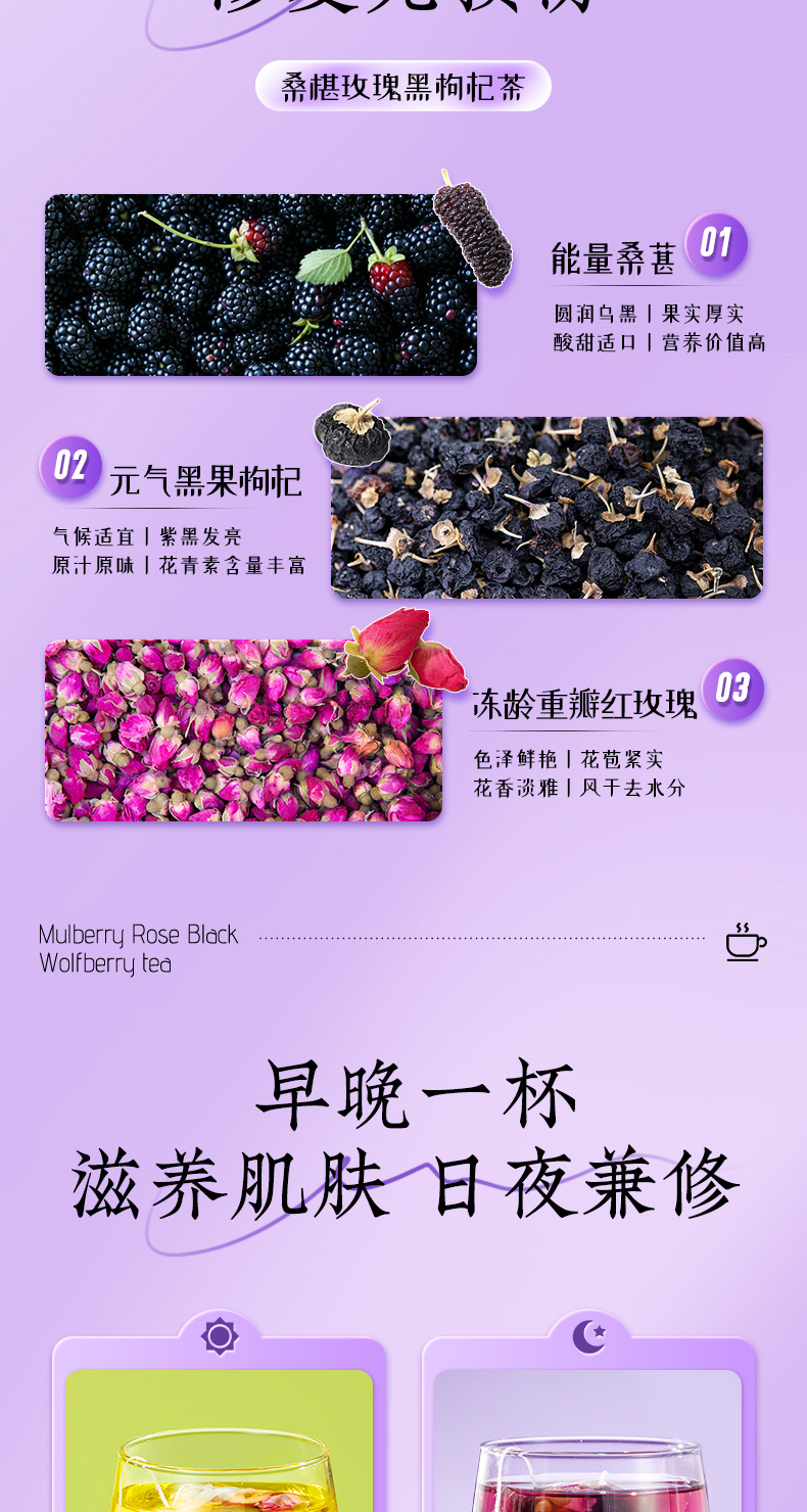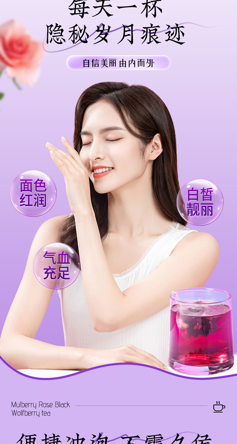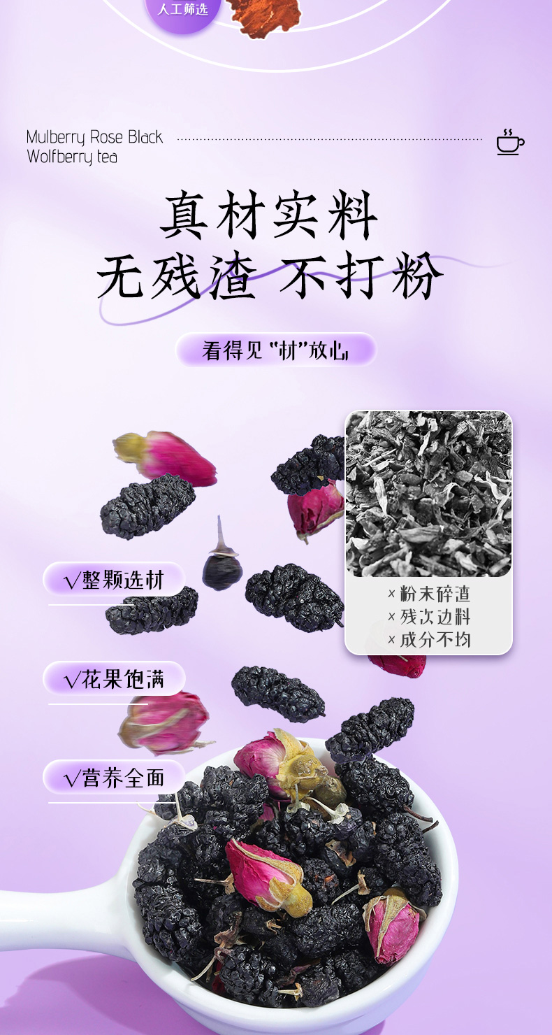 (特)北京同仁堂桑葚干黑枸杞玫瑰花茶组合女性非美白养颜养生茶