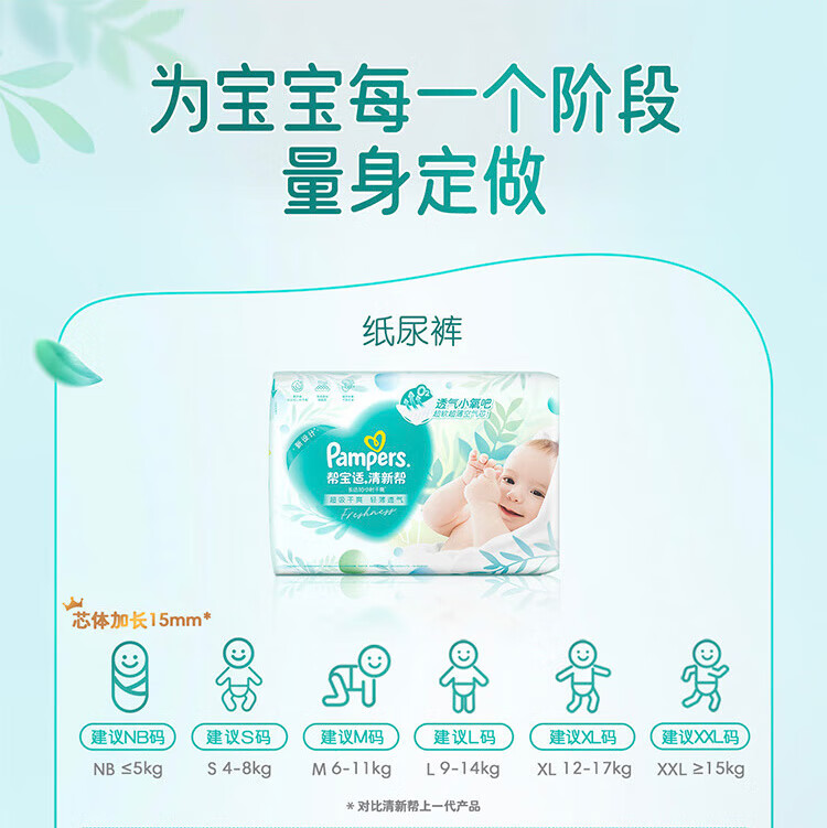 (特)帮宝适清新帮拉拉裤 成长裤 婴儿裤型尿不湿 XXL68片(新老包装随机发货)