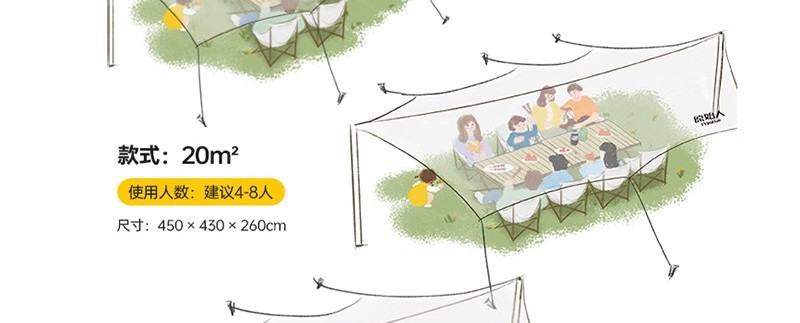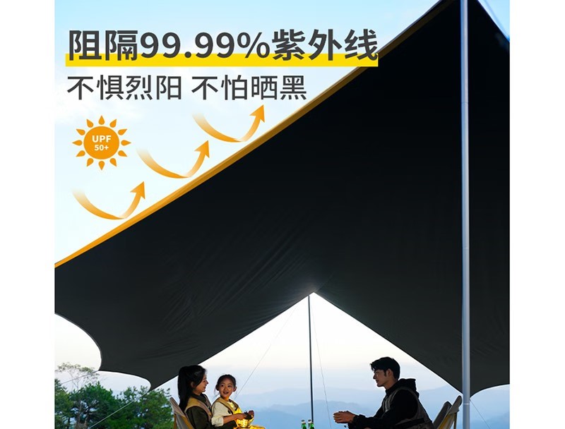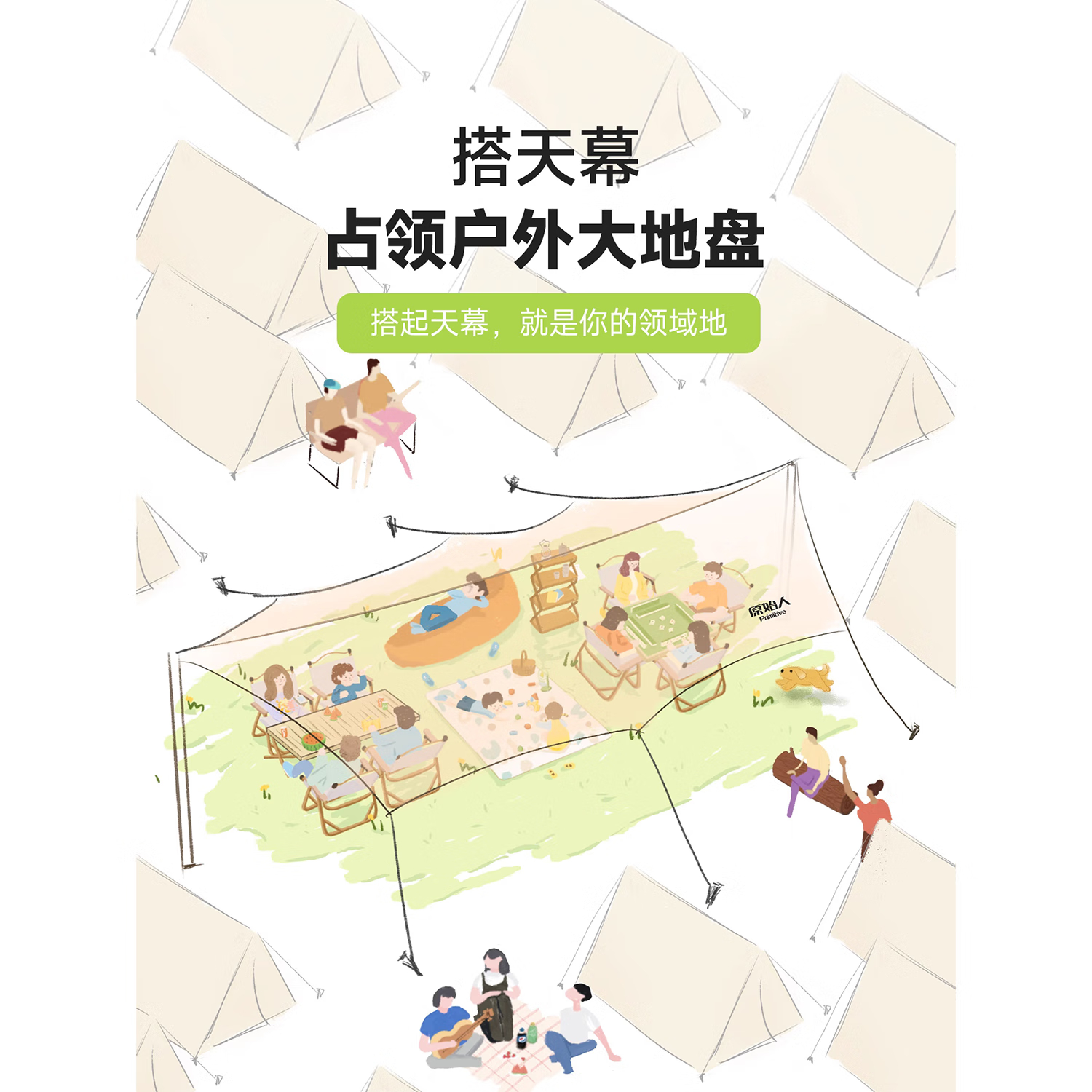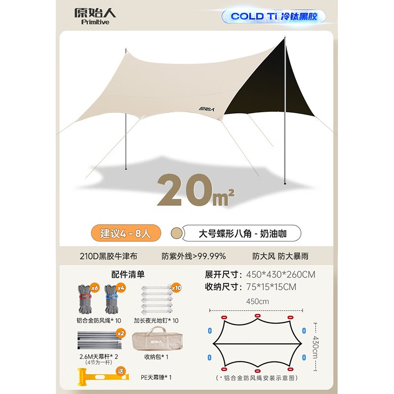 (特)原始人 黑胶天幕帐篷户外露营网红野营遮阳棚野餐桌椅防晒八角蝶形
