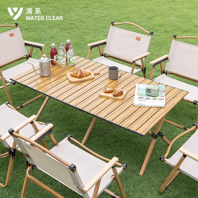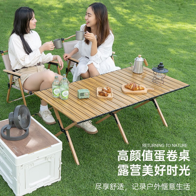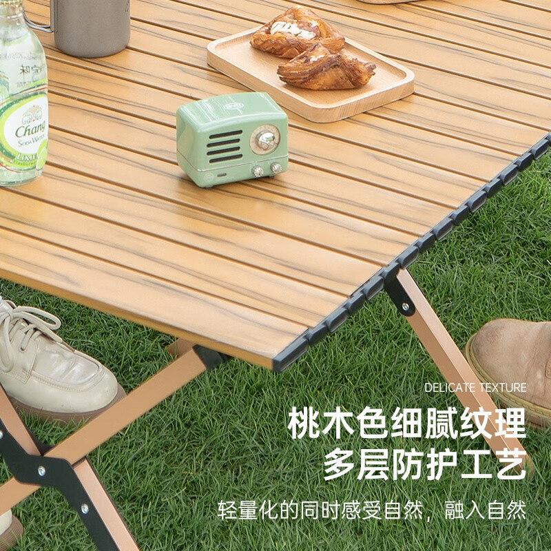 (特)清系便携式露营桌子野餐桌椅套装野营用品装备户外折叠桌蛋卷桌 桃木色特大号120款