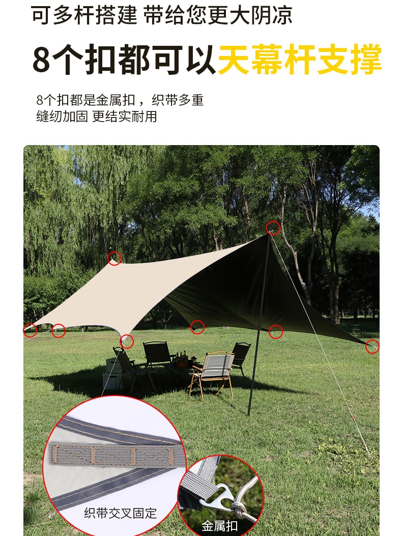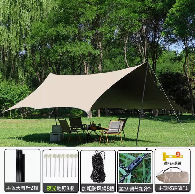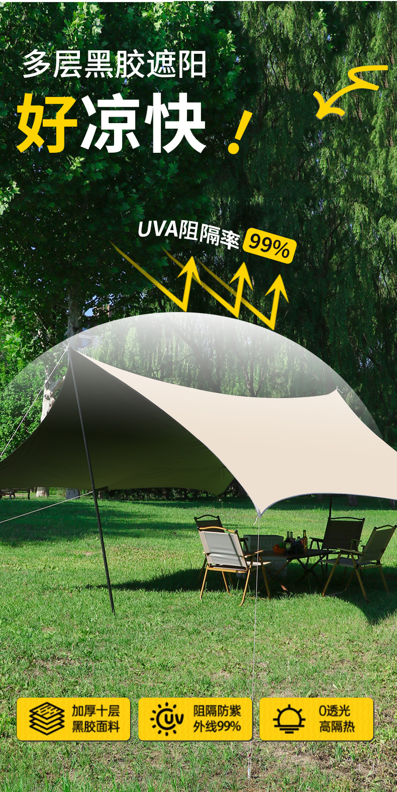 (特)黑胶天幕户外露营野餐庭院沙滩防雨防晒遮阳棚牛津布帐篷便携