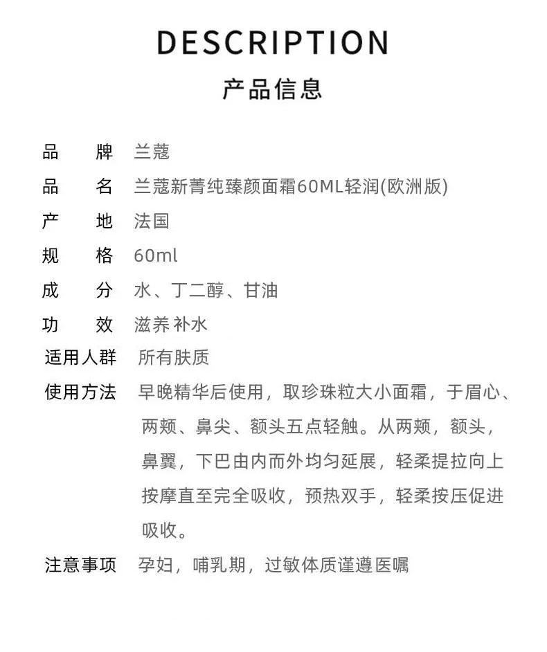 (特)兰慈菁纯面霜60ml轻盈版玻色因 抗皱紧致护肤品