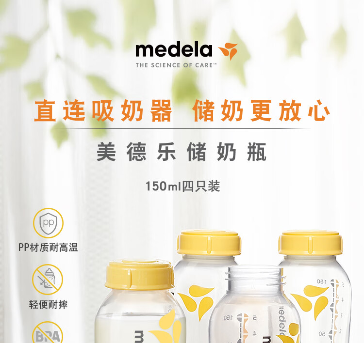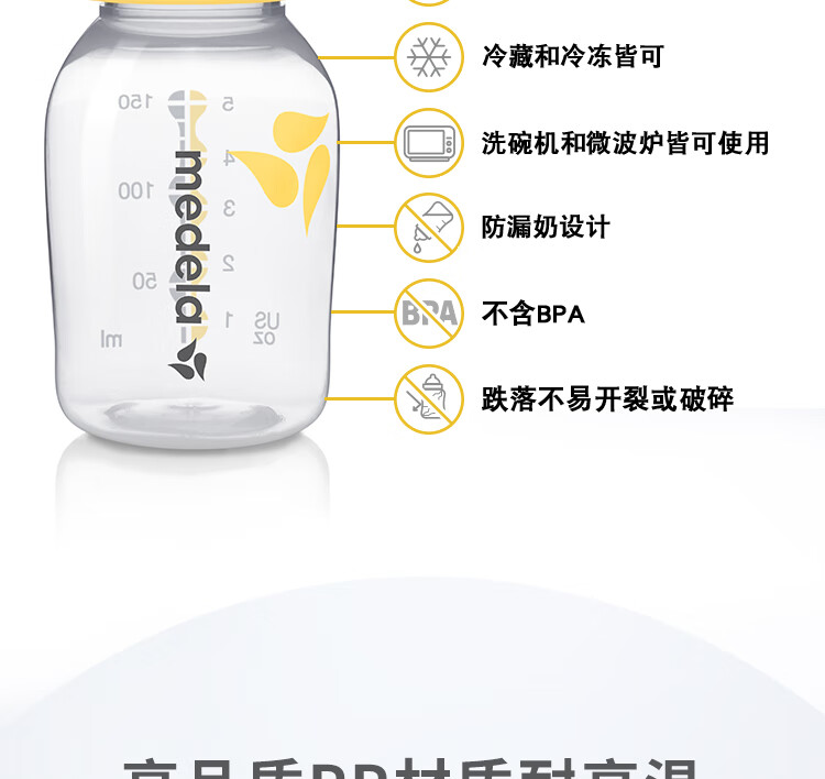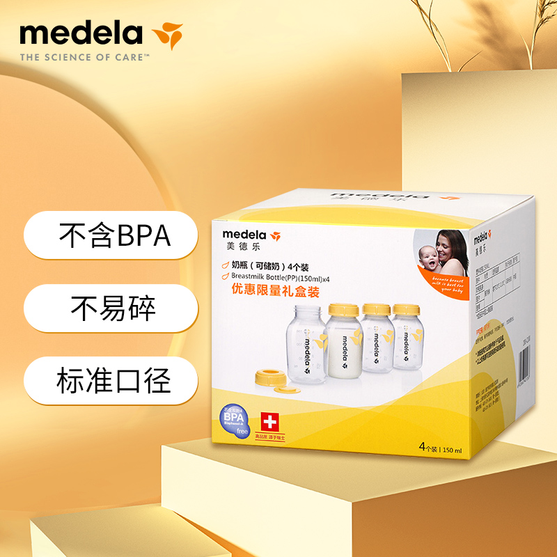 (特)美德乐(Medela)奶瓶储奶瓶存奶瓶喂奶食物保鲜婴儿宝宝PP材质150ml(4个装)
