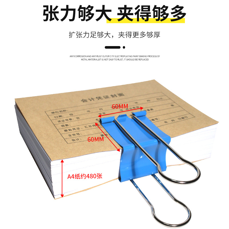 (特)60mm黑色特大号长尾夹燕尾夹加大号文具票夹玻璃会计凭证装订夹子