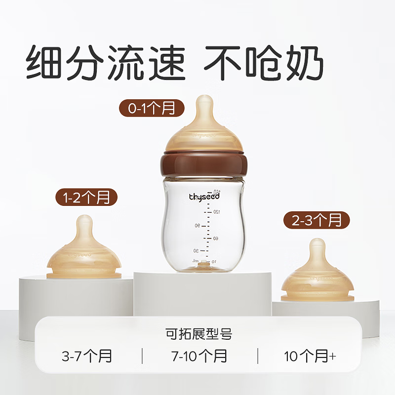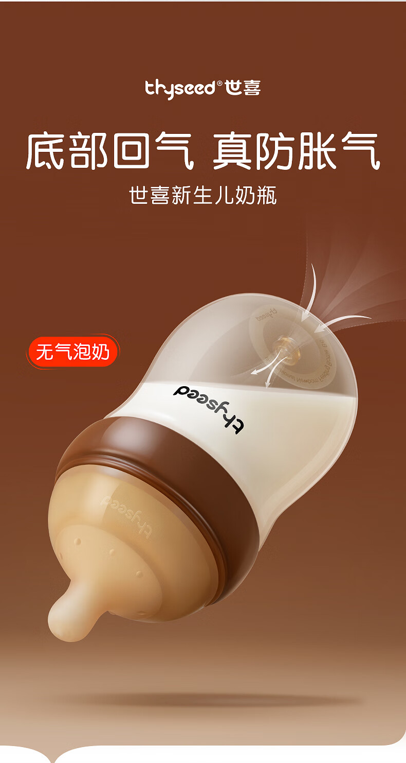 (特)世喜新生儿防胀气奶瓶3-7个月玻璃婴儿仿母乳奶嘴240ml