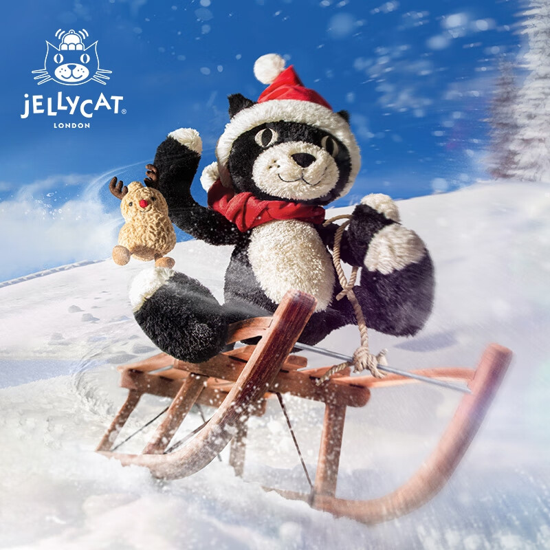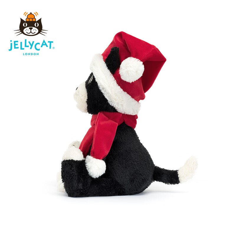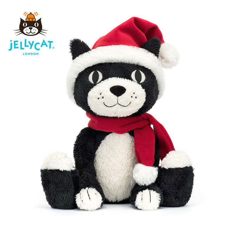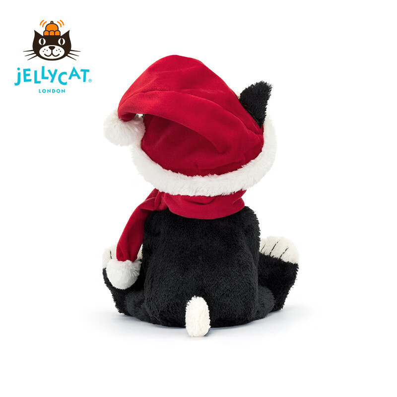 (特)Jellycat圣诞节新品吉利猫圣诞装毛绒玩具公仔可爱玩偶送礼生日礼物 黑色和米色 高32 X 宽11 CM