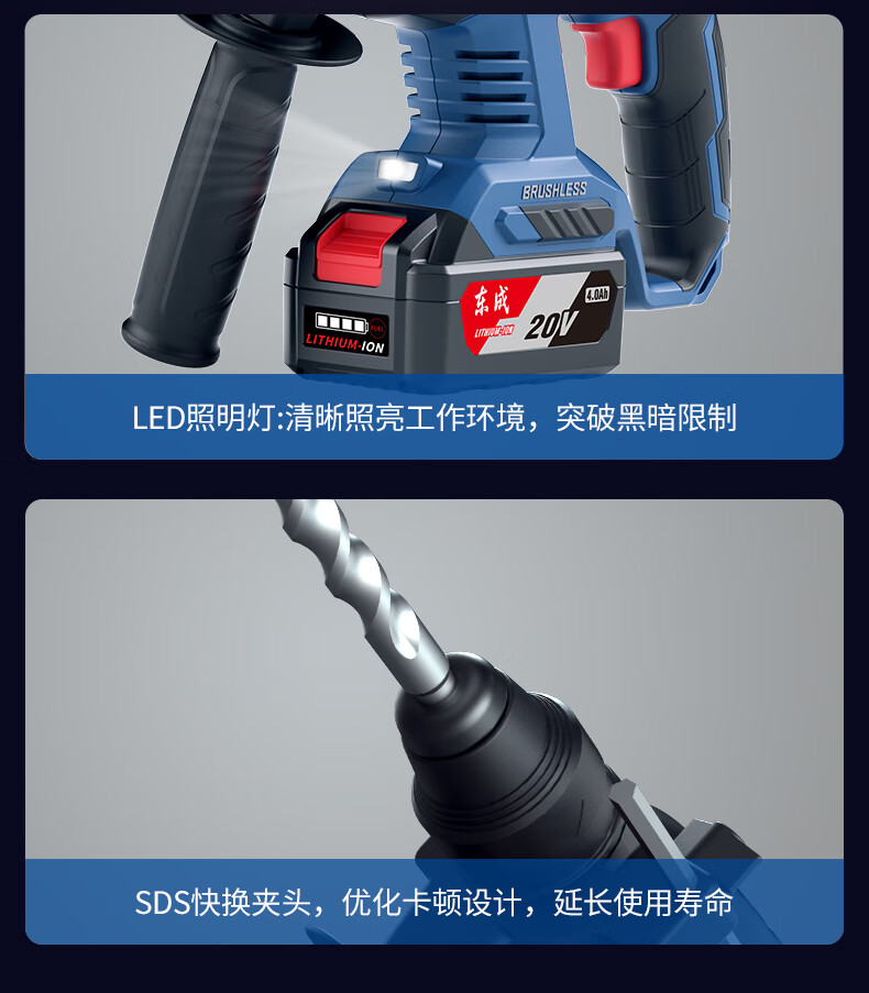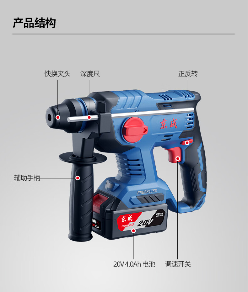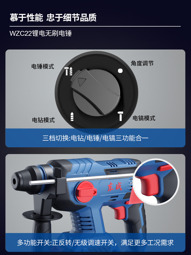 (特)东成20V工业级无刷充电电锤WCKIT10B冲击钻电镐电钻锂电角磨机工具