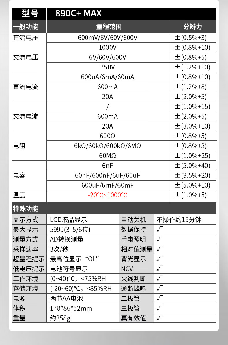 (特)胜利仪器(VICTOR)万用表高精度型电工专用数字万能表