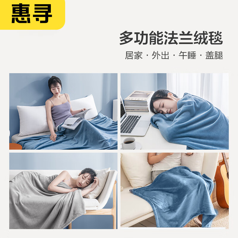 (特)惠寻 法兰绒毯子 午睡毯毛毯空调毯 150x200cm 天空蓝