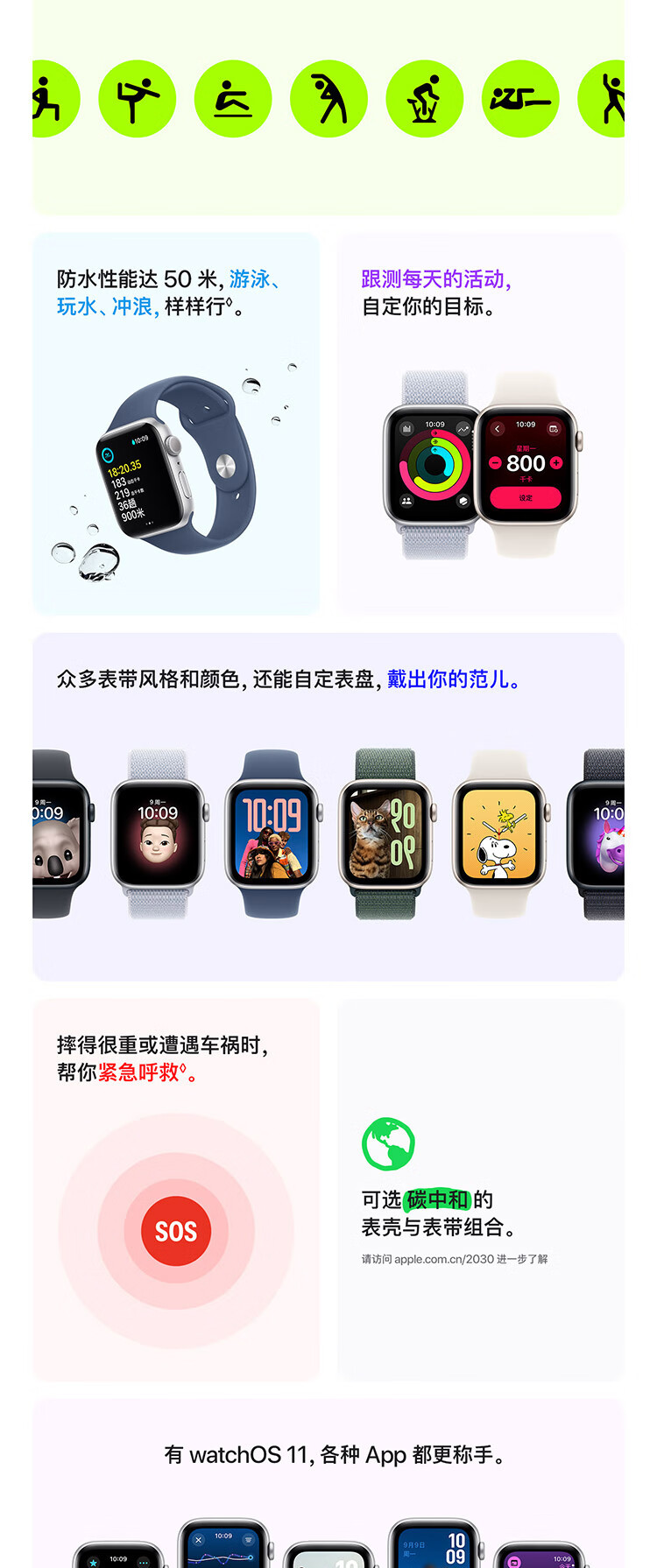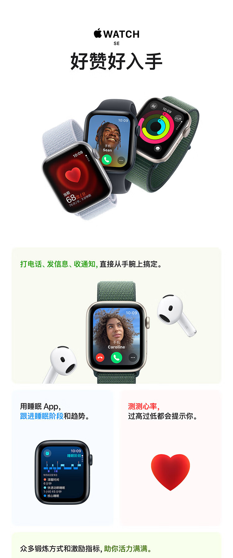 (特)Apple Watch SE 智能手表GPS款44毫米午夜色 运动型表带M/L