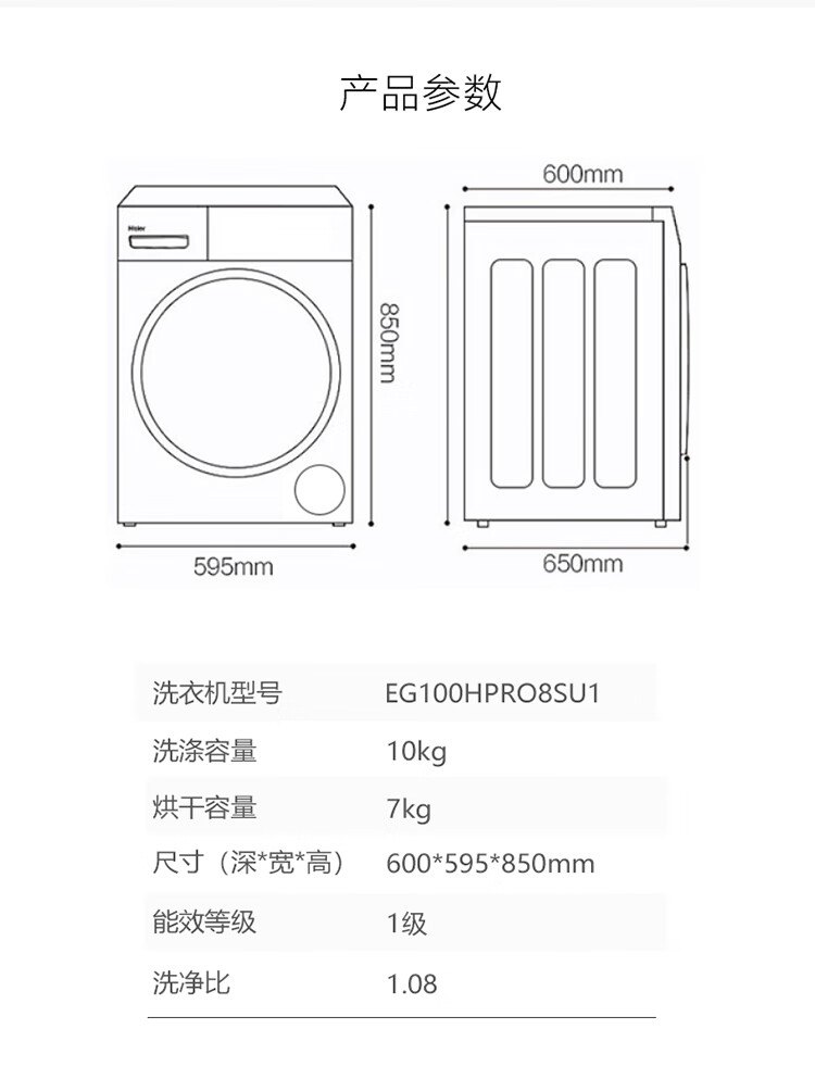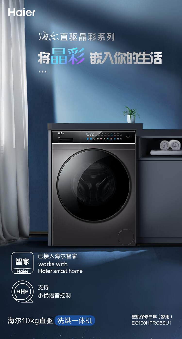 (特)海尔(Haier)全自动智能投放滚筒洗衣机10KG EG100HBDC189SU1