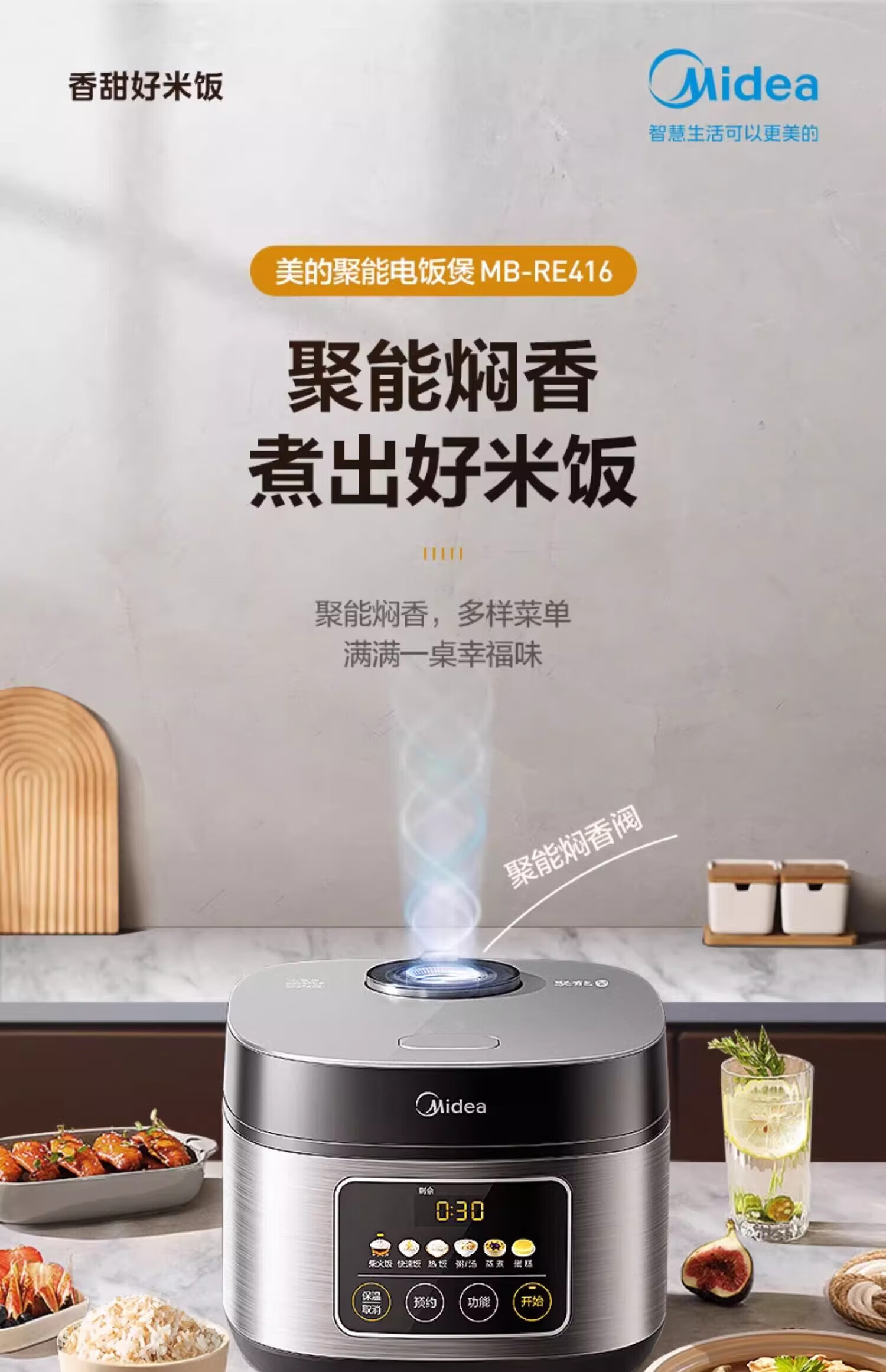 美的(Midea)电饭煲家用4L彩屏大容量RE416(南京江韵项目专拍,拍前请咨询客服)