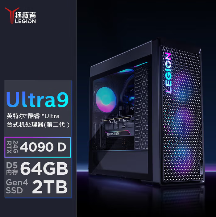 (特)联想台式机电脑拯救者刃9000K U9-285K RTX4090D-24G小天 64G内存 2TB固态 水冷侧透 定制