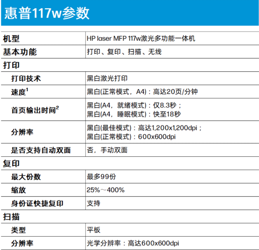 (特)惠普Laser MFP 117w黑白激光无线WiFi打印机一体机