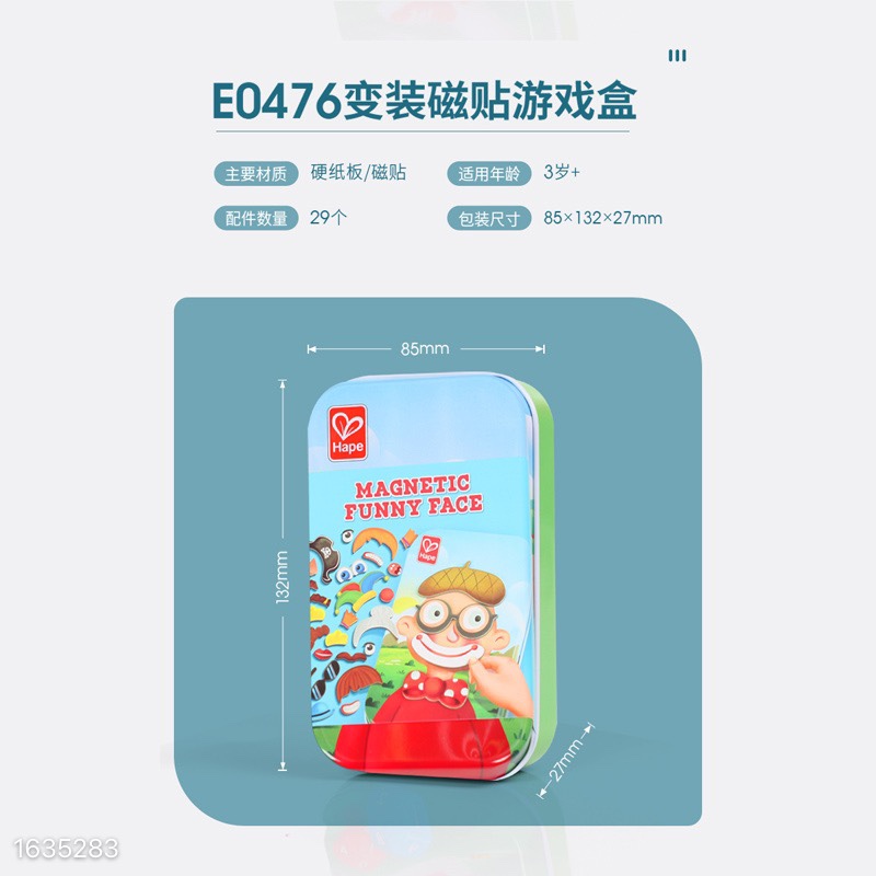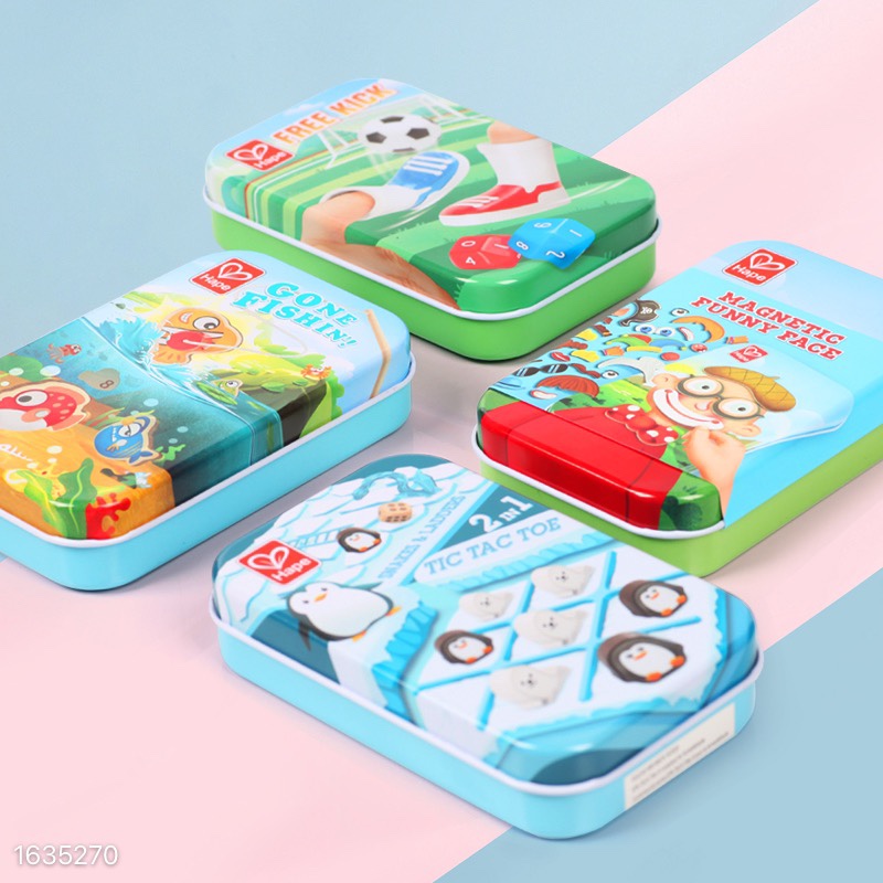 hape 口袋小游戏盒钓鱼铁盒 三子棋蛇棋 手指足球游戏盒 变装磁贴