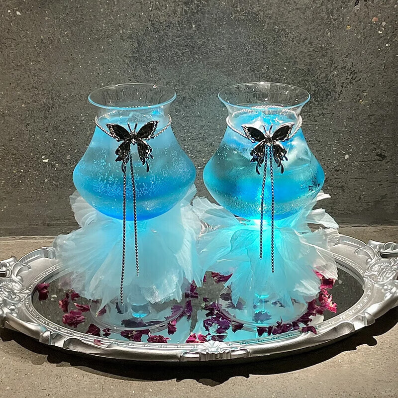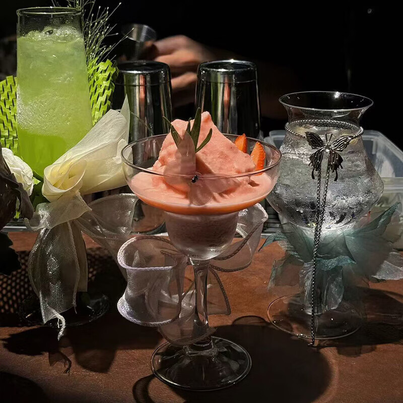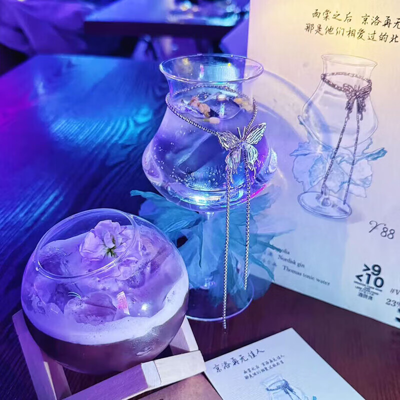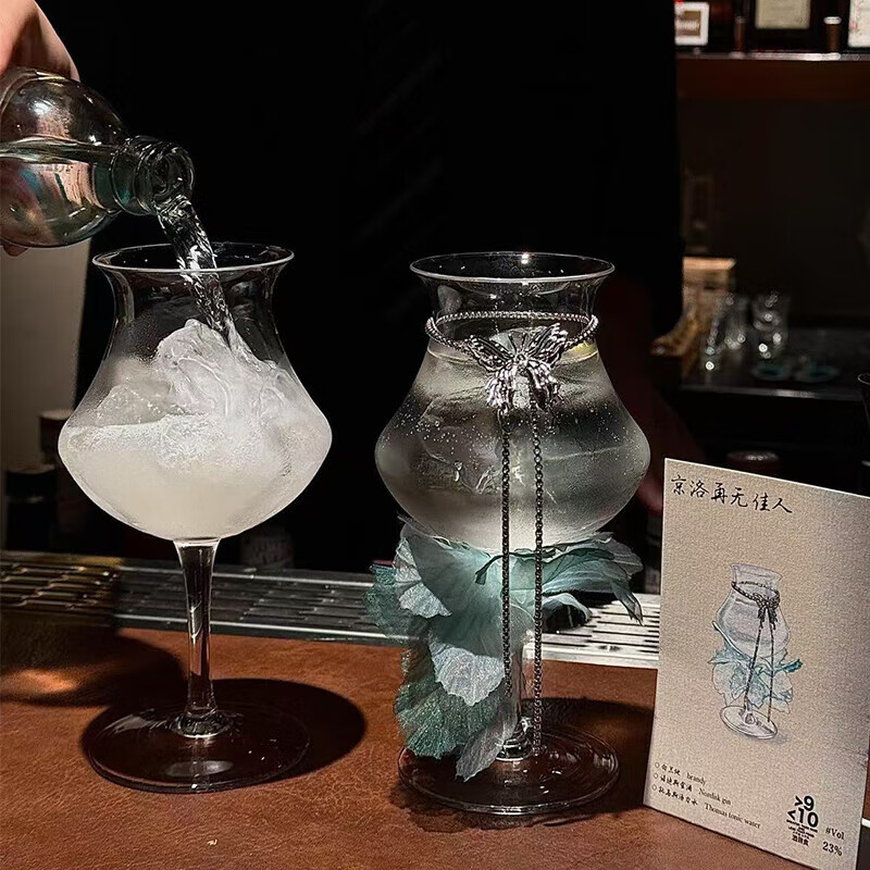 (特)山头林村水晶高脚鸡尾酒杯玛格丽杯京洛再无佳人调酒杯氛围感酒杯香槟杯 蝴蝶项链