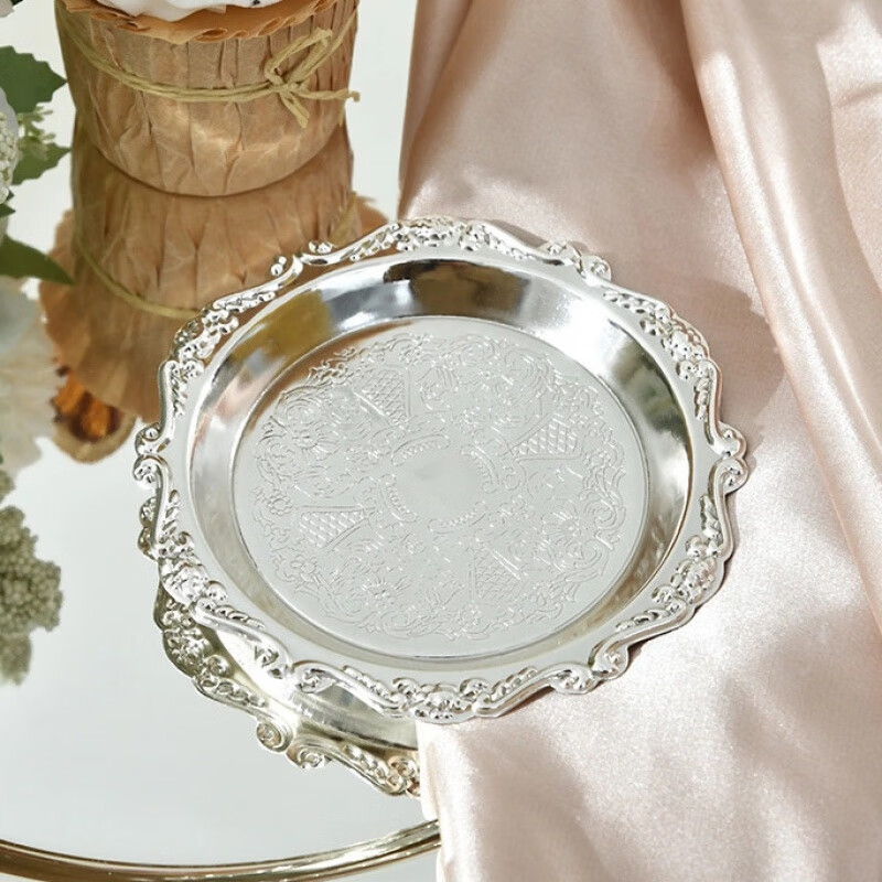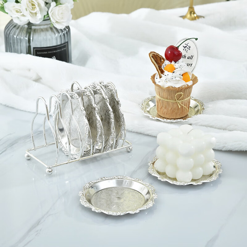(特)轻奢金属小托盘装饰镜面金色茶杯托首饰收纳盘零食盘欧式ins