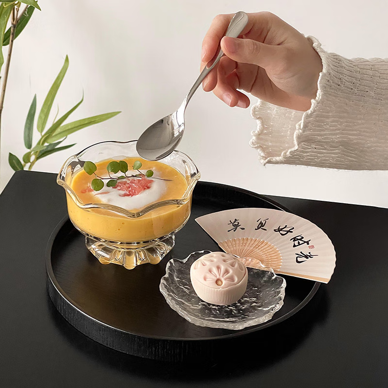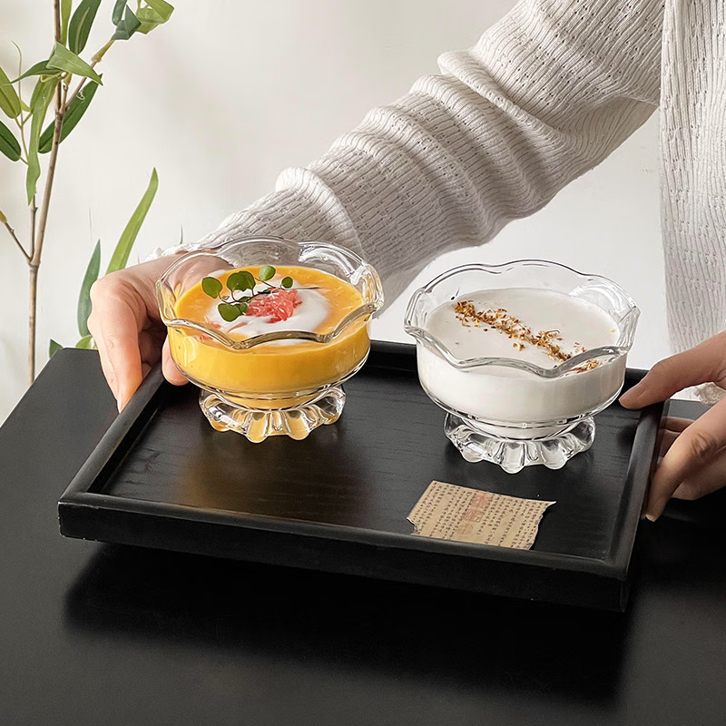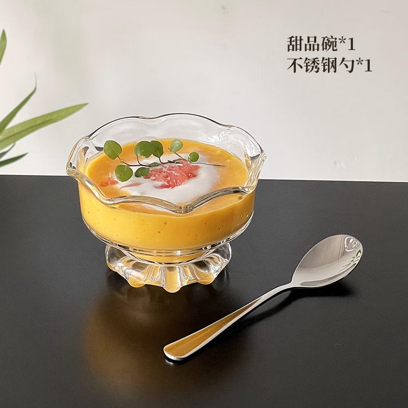 (特)三栖虎中式花边高脚甜品碗水晶玻璃水果碗高颜值糖水碗燕窝酸奶冰淇淋碗