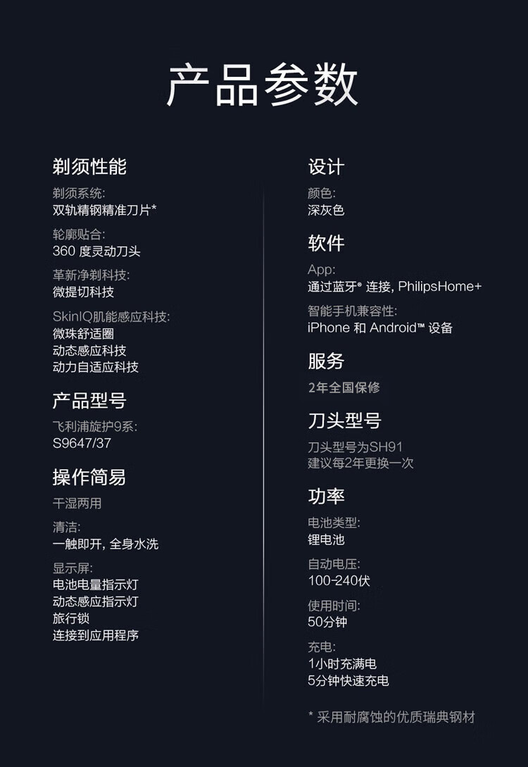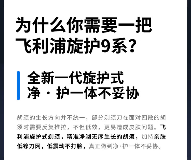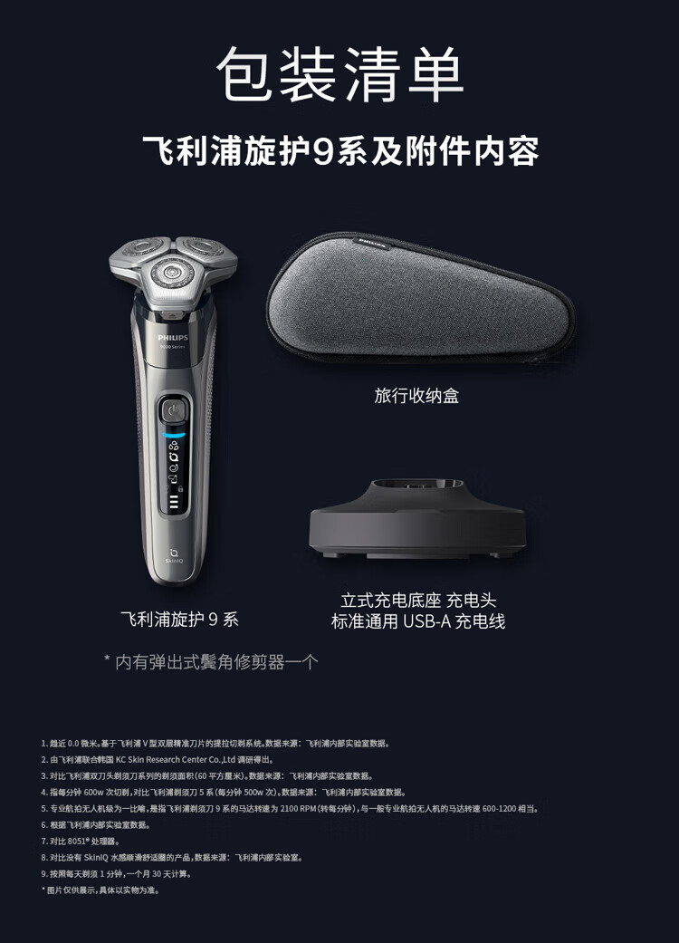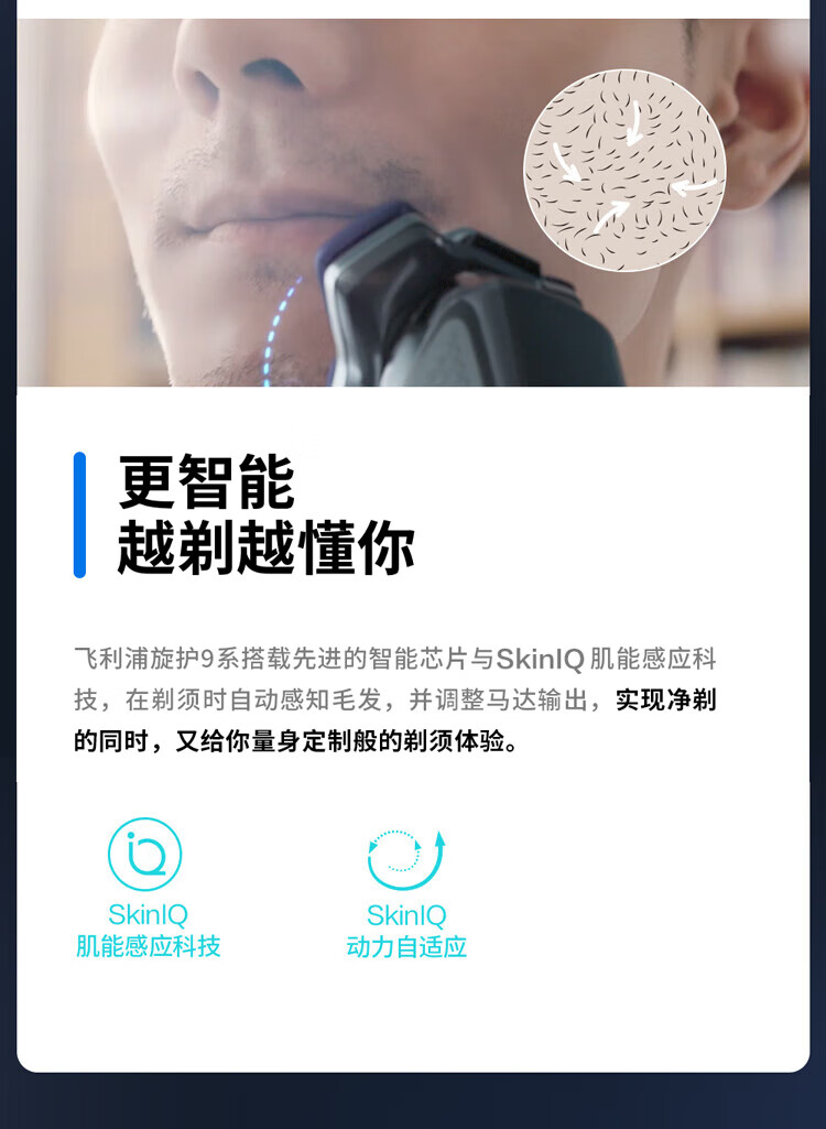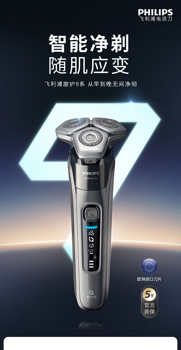 (特)飞利浦(PHILIPS)电动剃须刀旋护9系经典版 SkinIQ高端智能刮胡刀