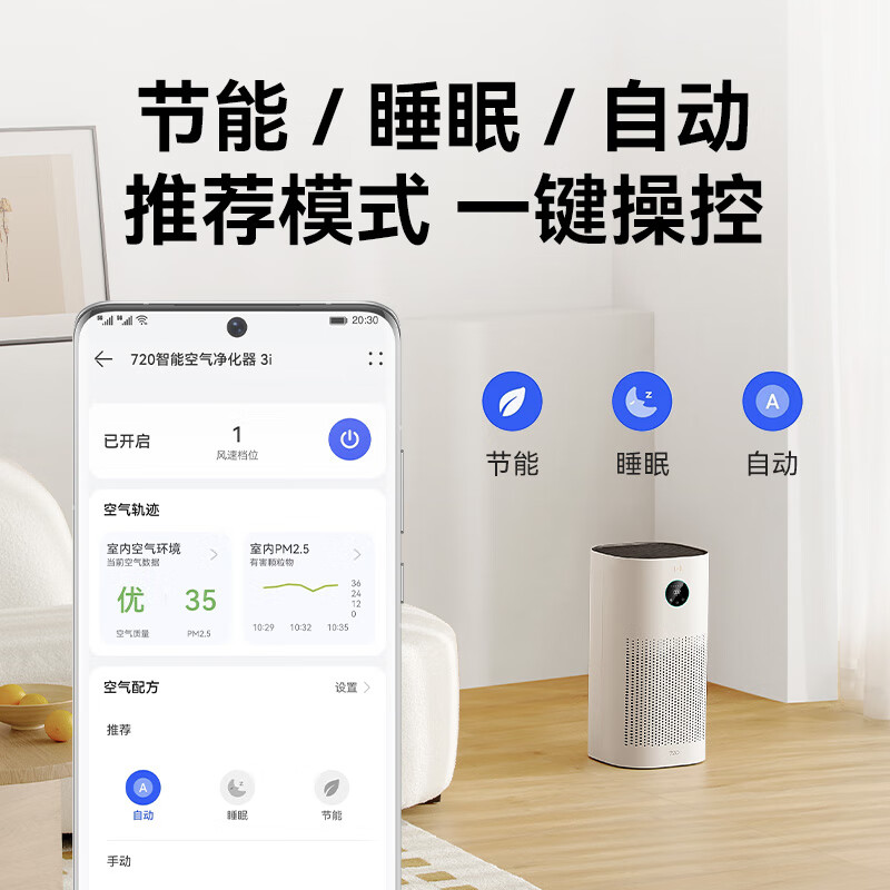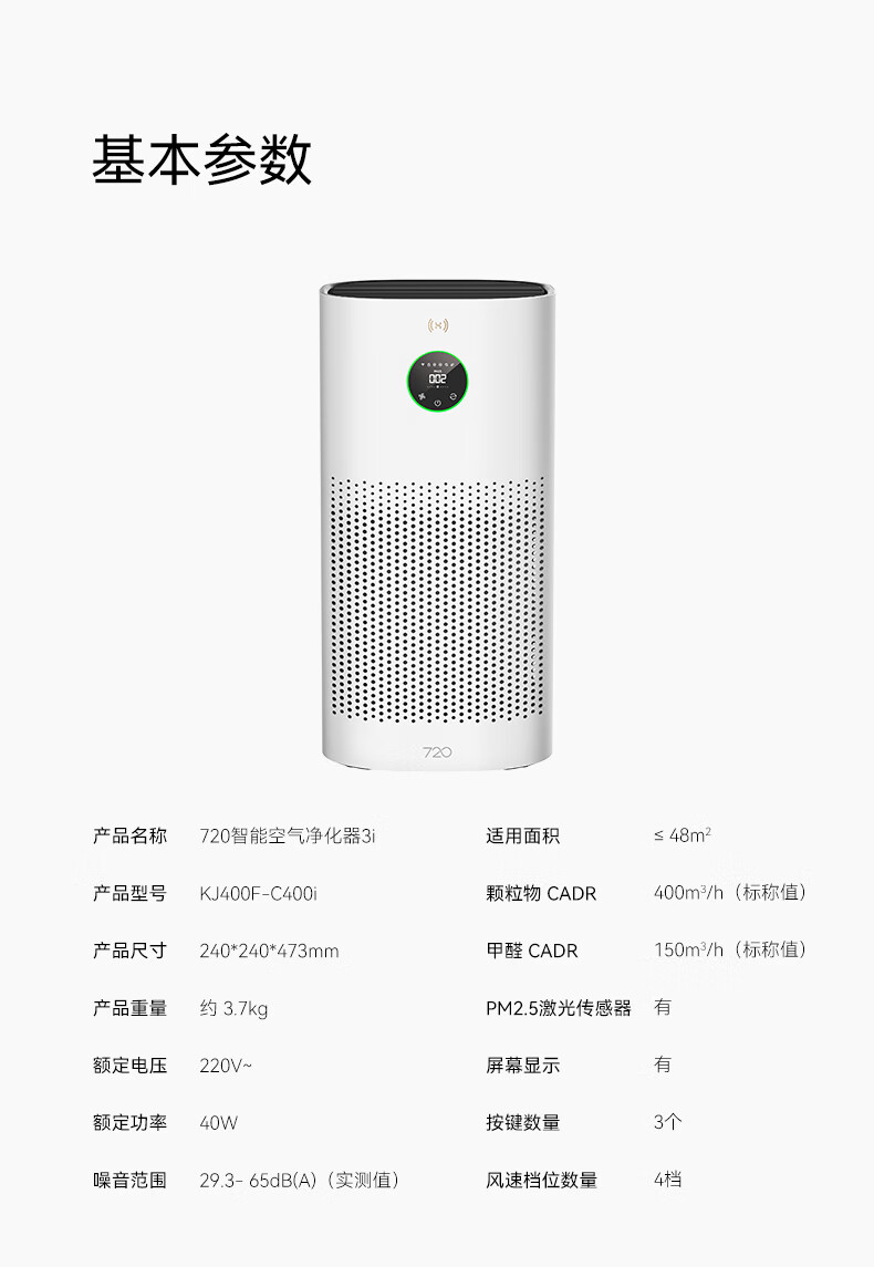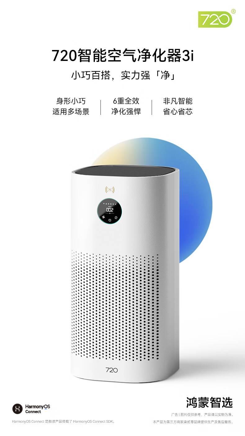 (特)华为智选鸿蒙智选720智能空气净化器3i 除甲醛去除烟味杀菌除雾霾花粉过敏原宠物卧室小户型专用