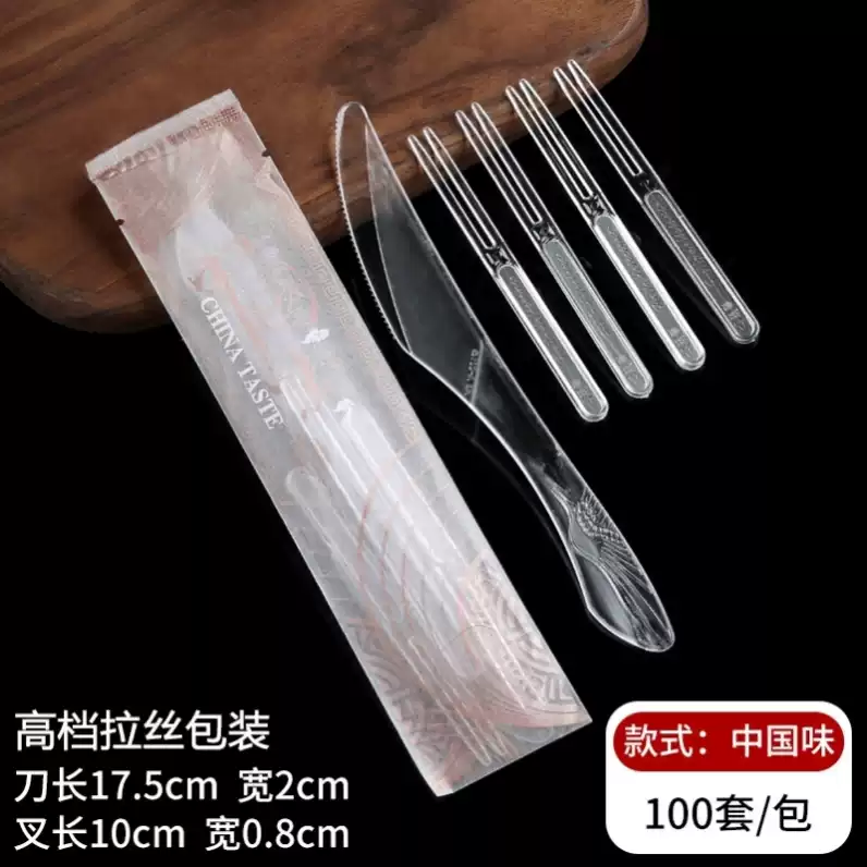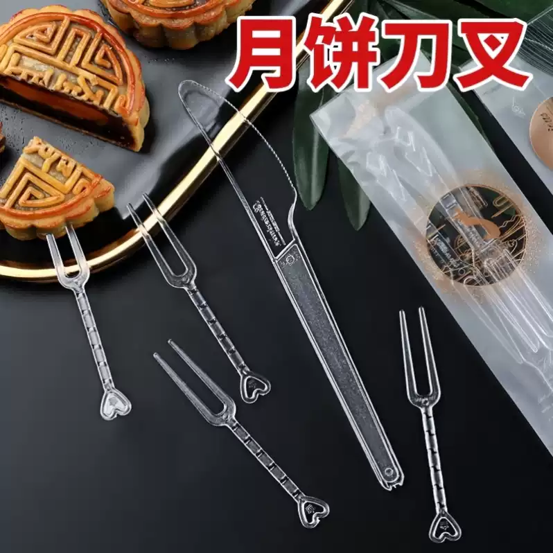 (特)语森忆中秋月饼刀叉一次性塑料点心甜品蛋糕叉子1刀4叉独立包装餐具套装