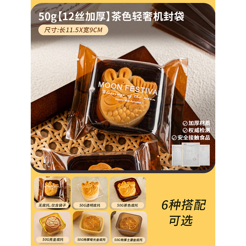 (特)Vinland月饼包装袋机封袋子新款50克75g自封带托盒底托冰打包皮广式2024
