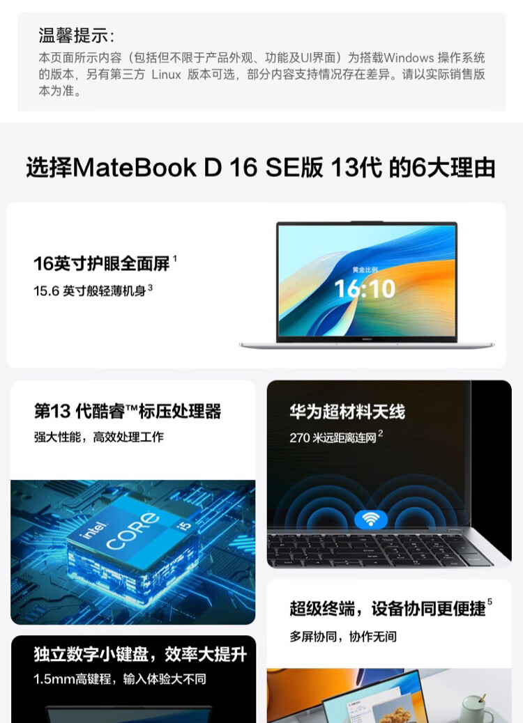 (特)华为MateBook D 16 SE Linux版(南京江韵项目专拍,拍前请咨询客服)