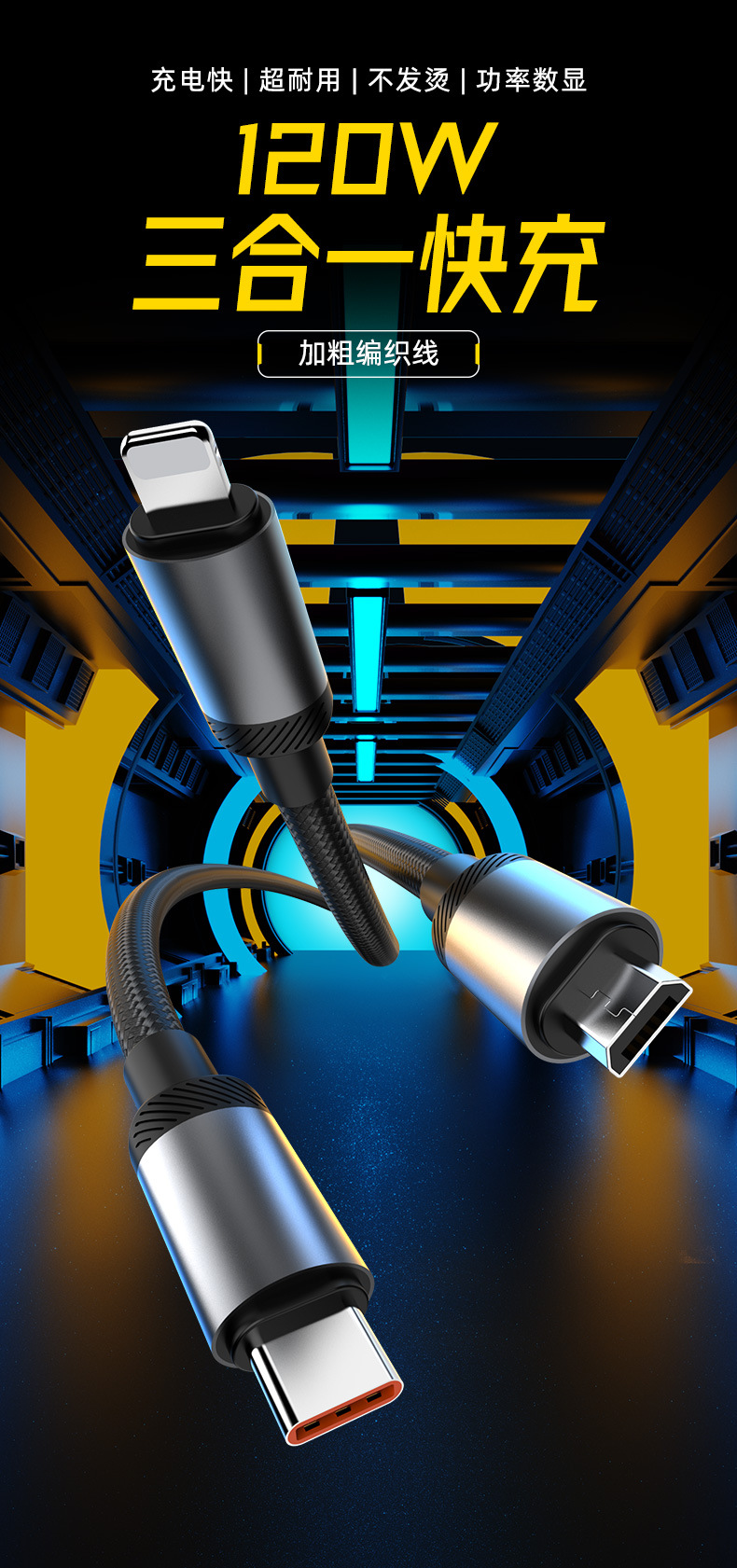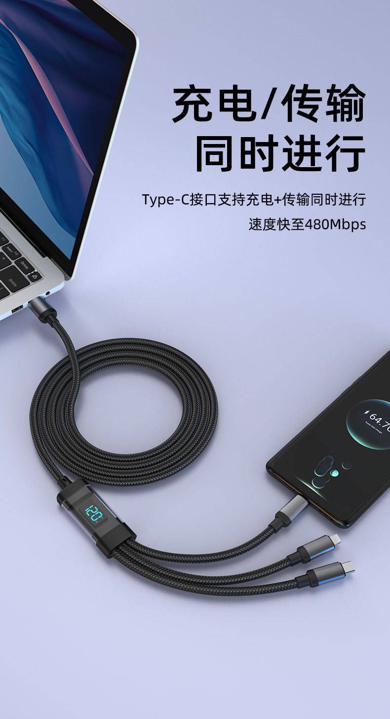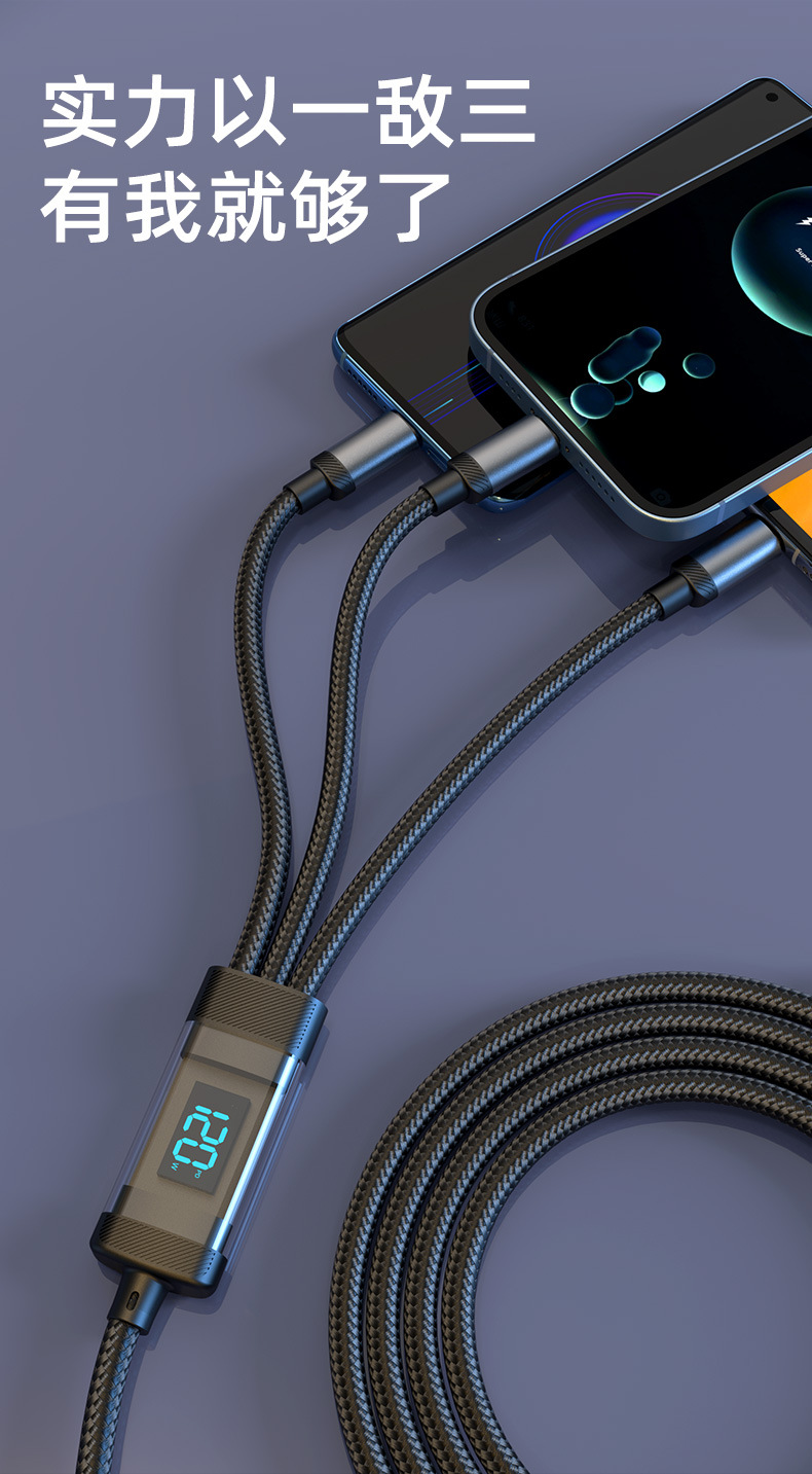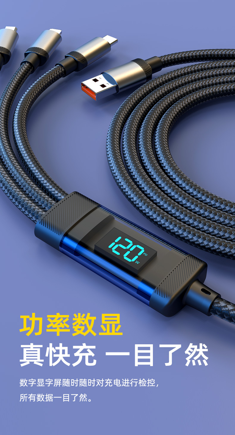 (特)120W数显三合一数据线适用苹果华为小米超级快充一拖三手机编织线(南京江韵项目专拍,拍前请咨询客服)