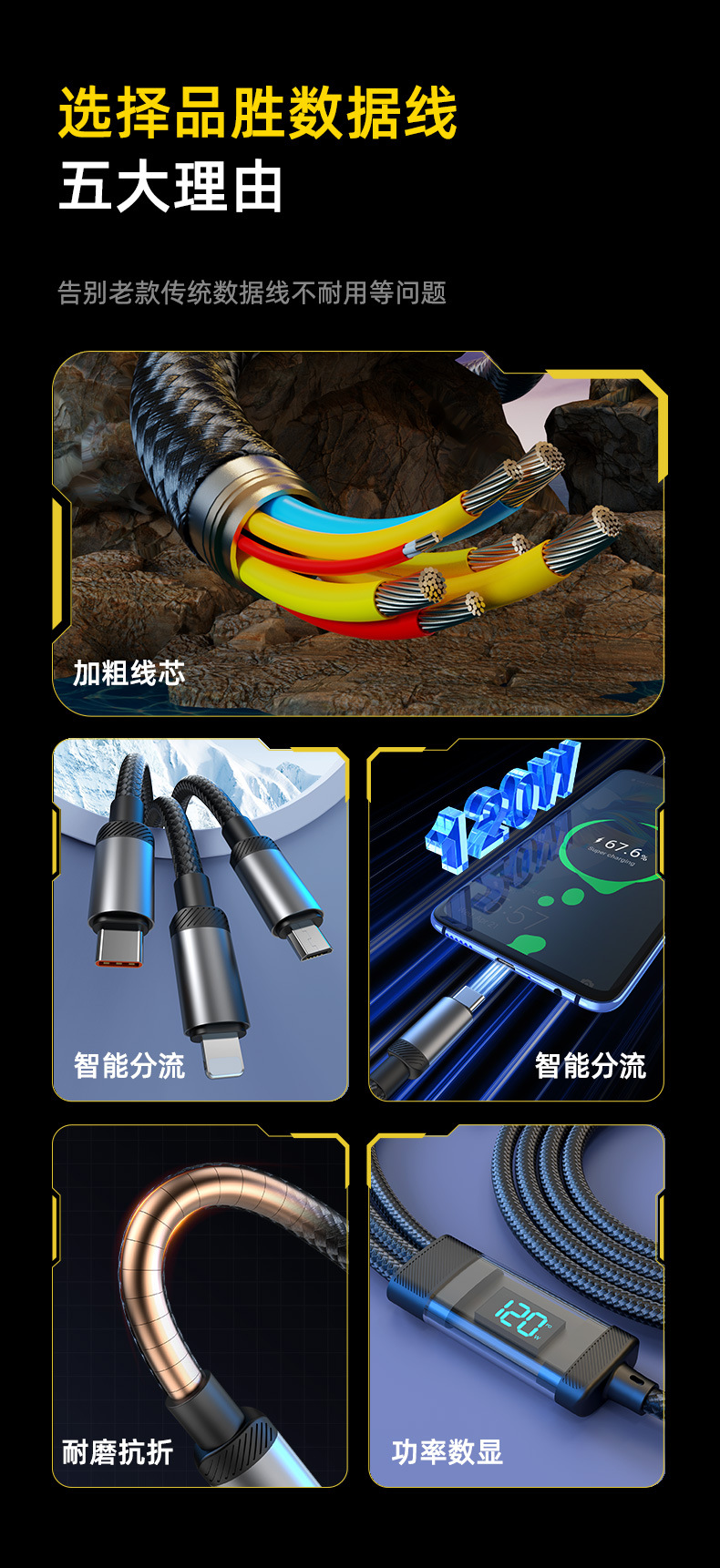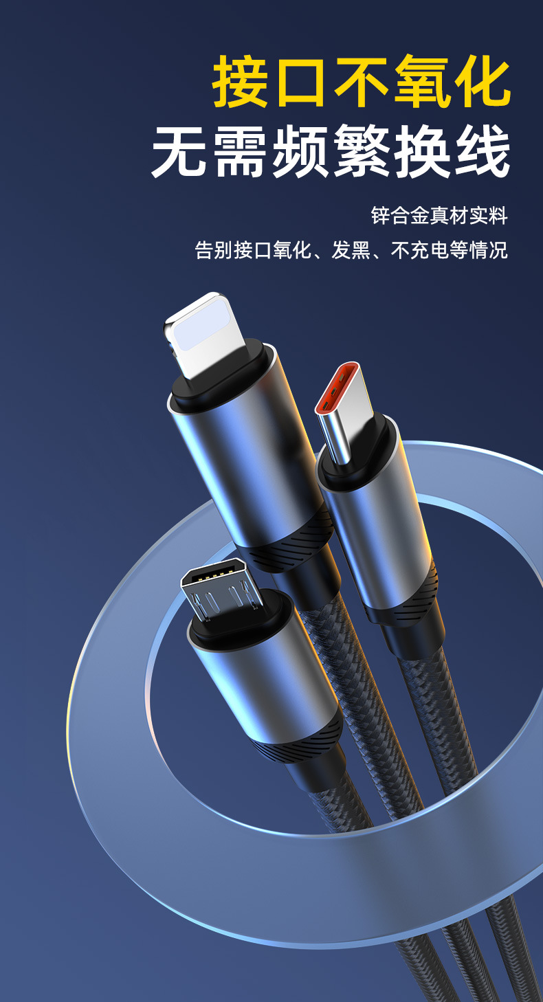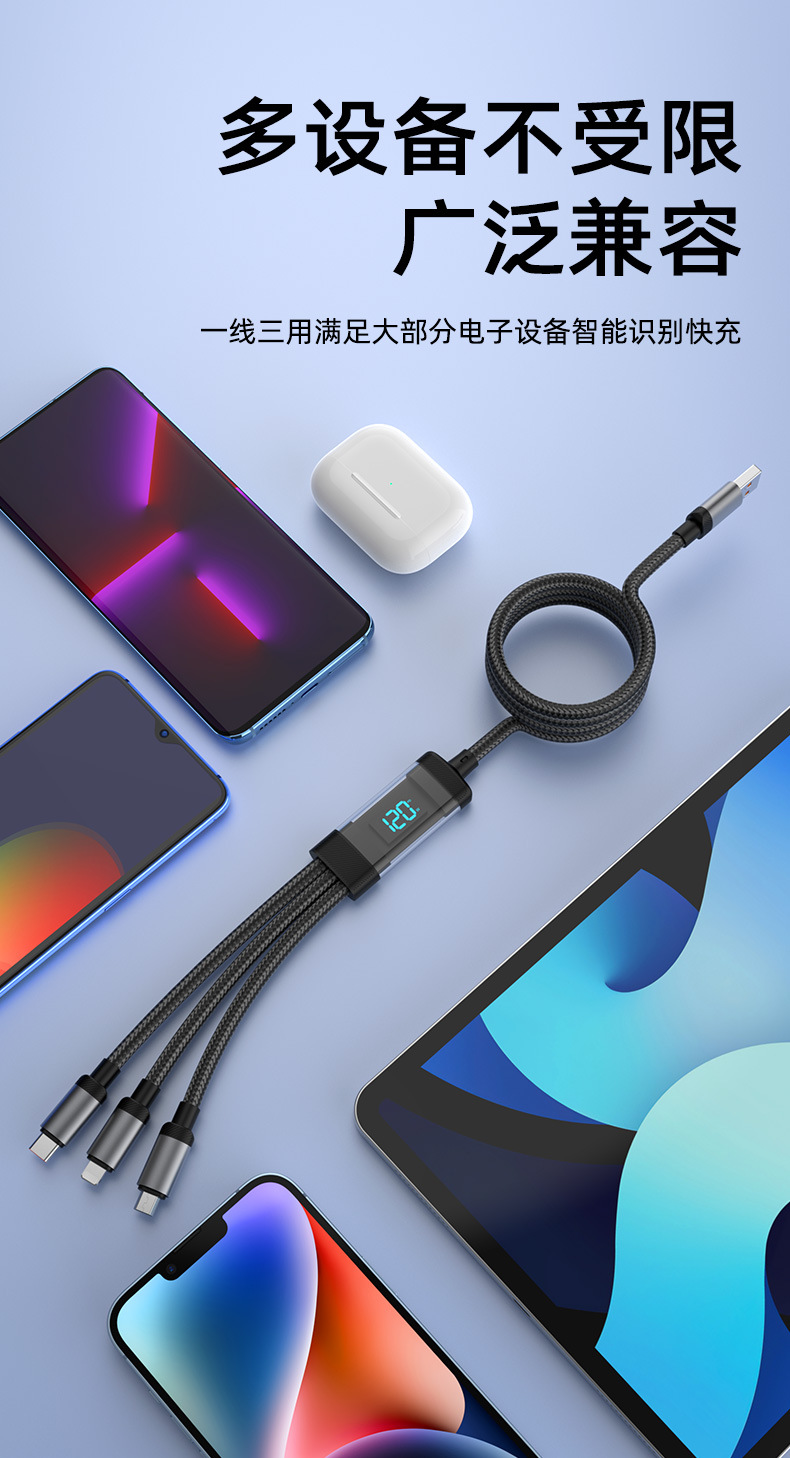 (特)120W数显三合一数据线适用苹果华为小米超级快充一拖三手机编织线(南京江韵项目专拍,拍前请咨询客服)