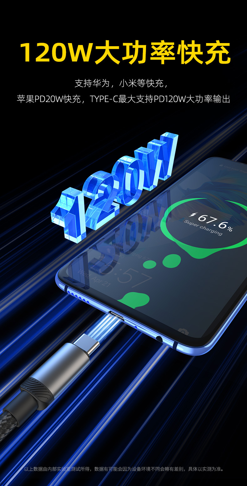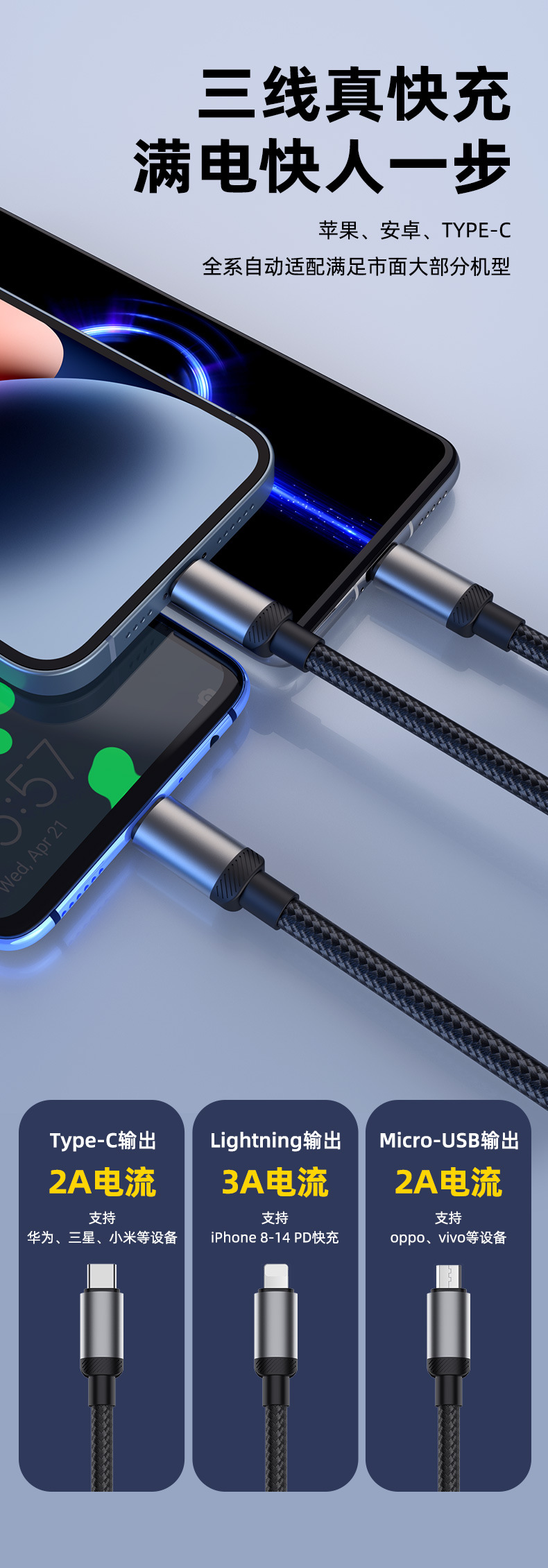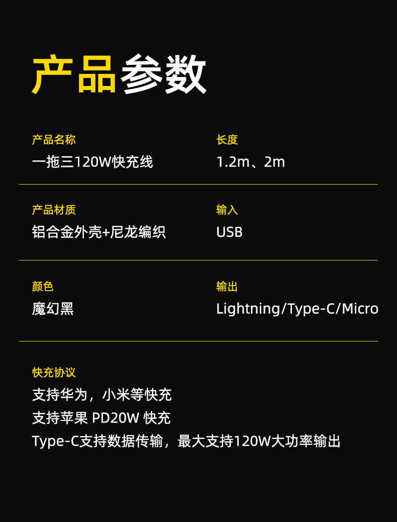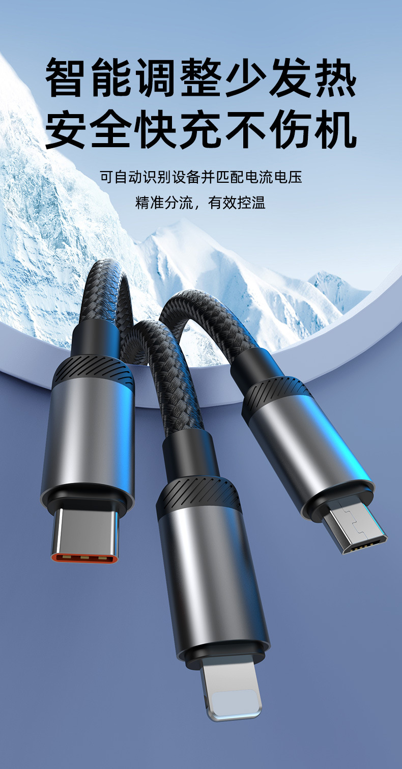 (特)120W数显三合一数据线适用苹果华为小米超级快充一拖三手机编织线(南京江韵项目专拍,拍前请咨询客服)