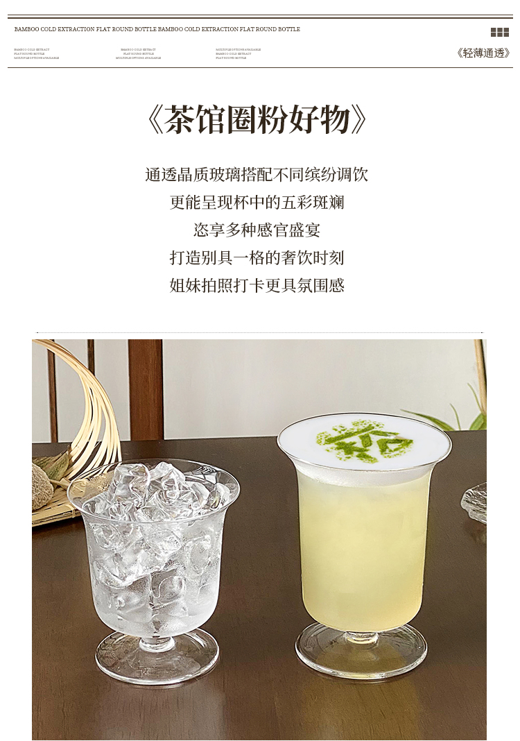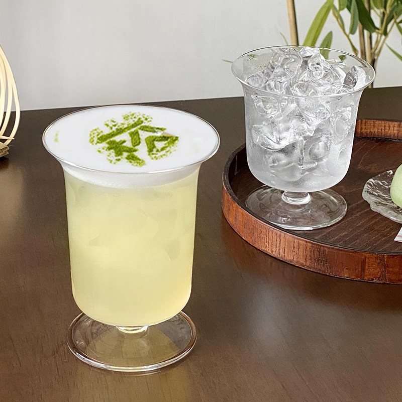 (特)高颜值轻薄玻璃杯复古高脚杯 ins冰咖啡杯拿铁杯冷饮杯气泡果汁杯