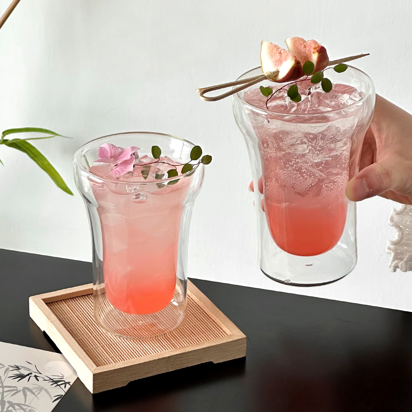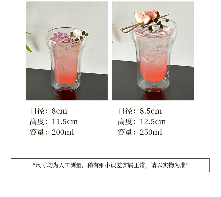 (特)创意双层透明玻璃杯耐热耐冷杯子高级感咖啡杯拿铁杯喝水杯饮品杯