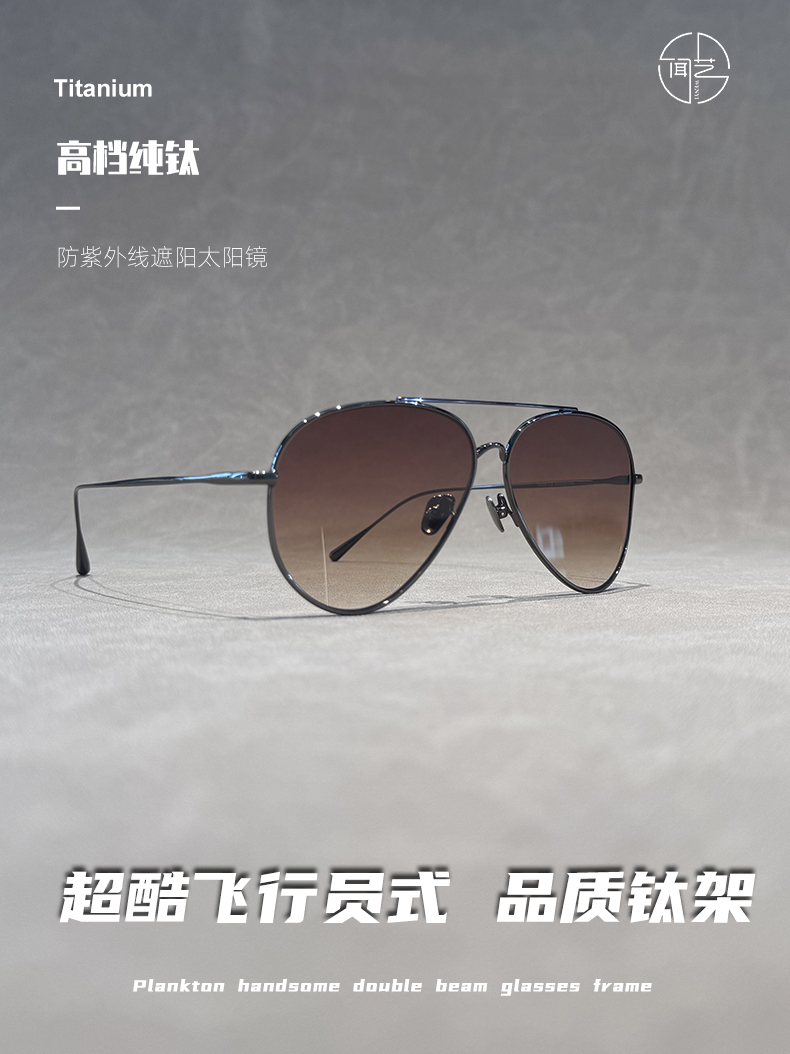 (特)高档纯钛飞行员茶色墨镜男款2025新款防紫外线渐进色大脸太阳镜潮