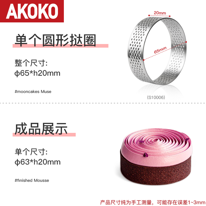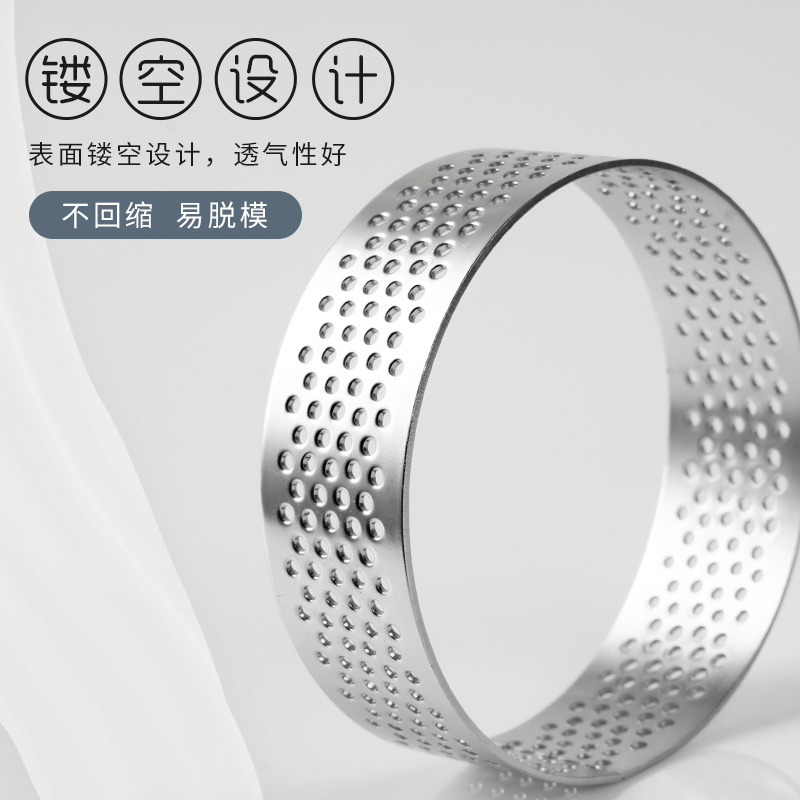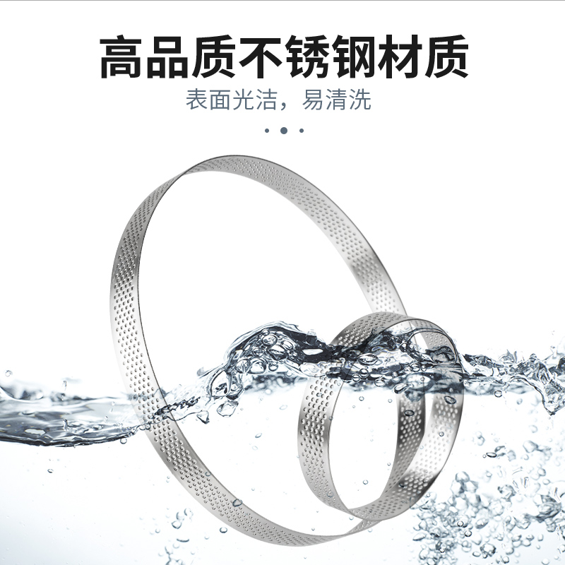 (特)AKOKO不锈钢圆形带孔挞圈模烘焙法式饼底挞皮塔壳透气圆型圈模具