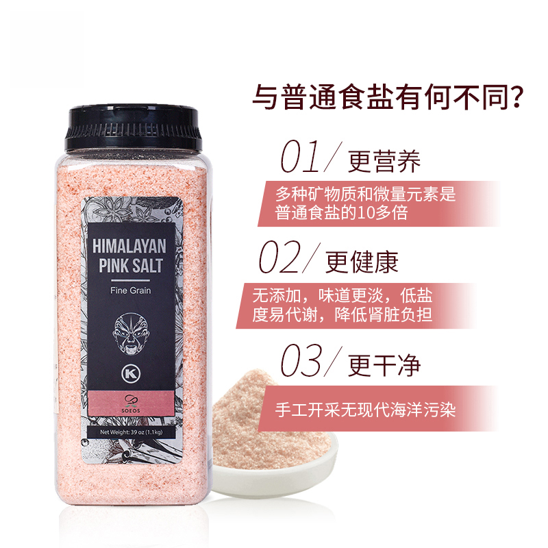 (特)SOEOS喜马拉雅进口玫瑰盐无加碘细盐矿盐西餐食用盐1.1kg