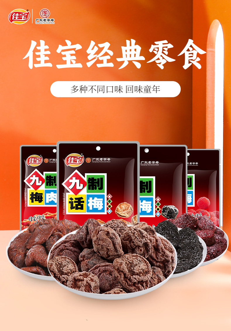 (特)佳宝九制话梅无核梅肉杨梅干青梅西梅乌梅酸梅子蜜饯果脯零食袋装