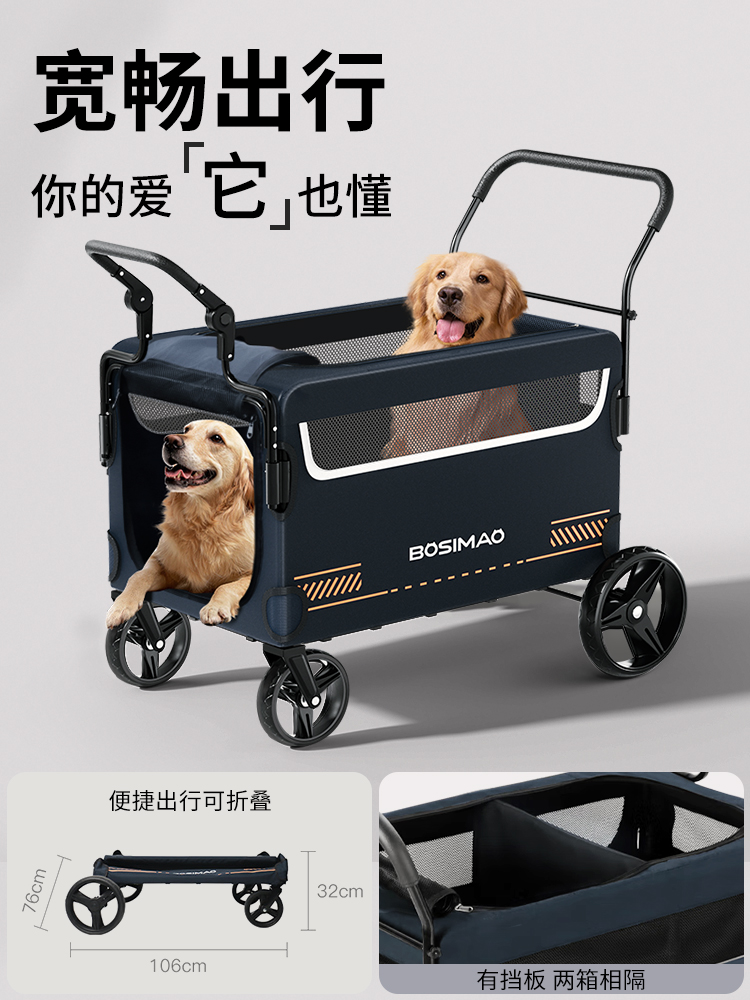 (特)BOSIMAO宠物推车大型犬狗外出便携可折叠老年残疾狗狗出门手推车