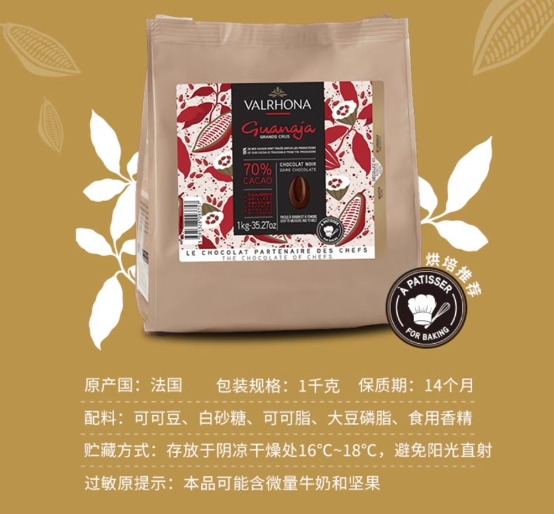 (特)法芙娜原料法国进口烘焙黑巧克力豆币家庭蛋糕生巧1公斤