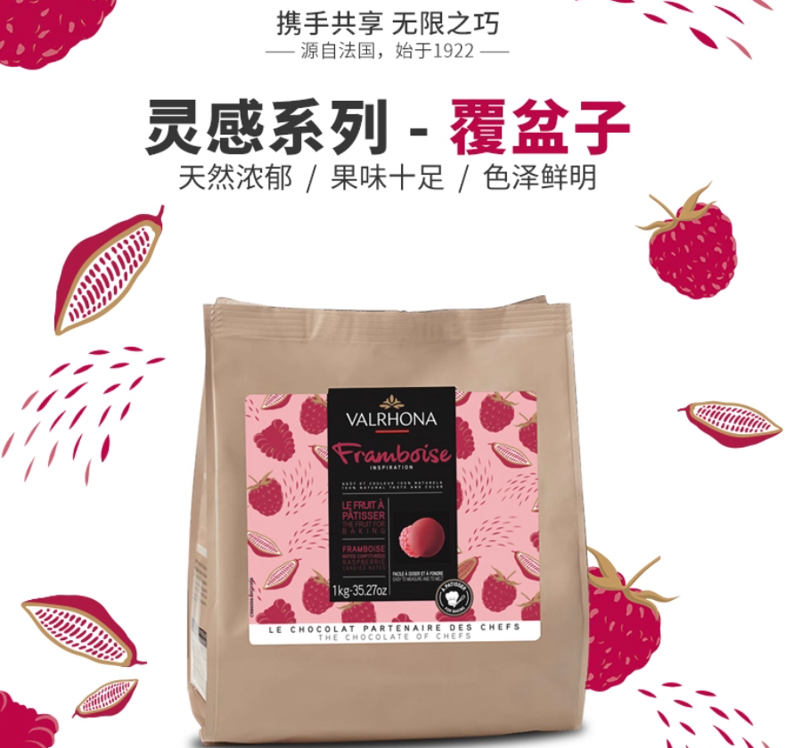 (特)法芙娜原料法国进口烘焙蛋糕纯可可脂零食灵感覆盆子巧克力豆1kg