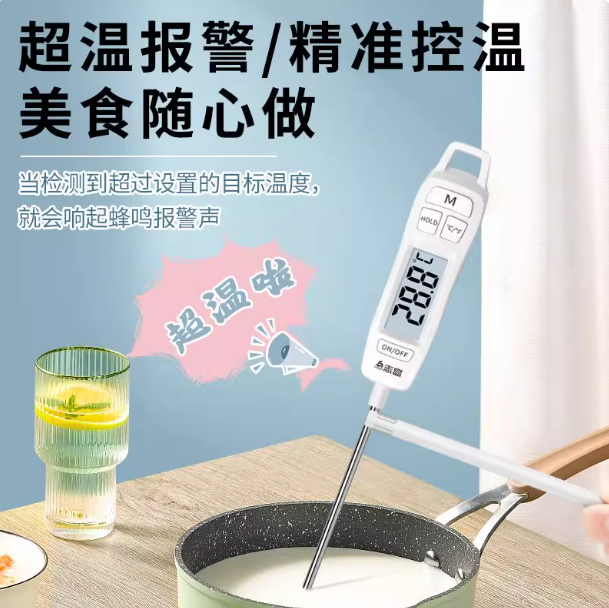 (特)高精度食品温度计烘焙食物中心快速测水温油温电子探针式婴儿厨房